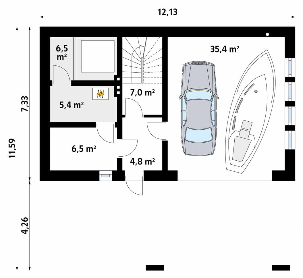- Szerokość domu12.13 m