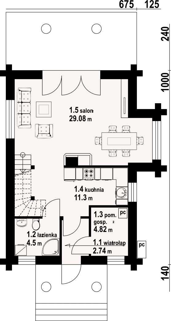 - KondygnacjeParterowy, z poddaszem