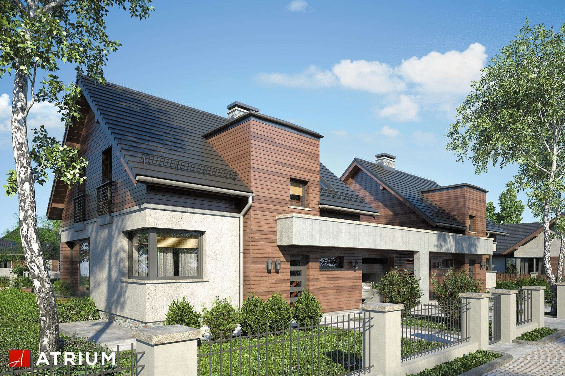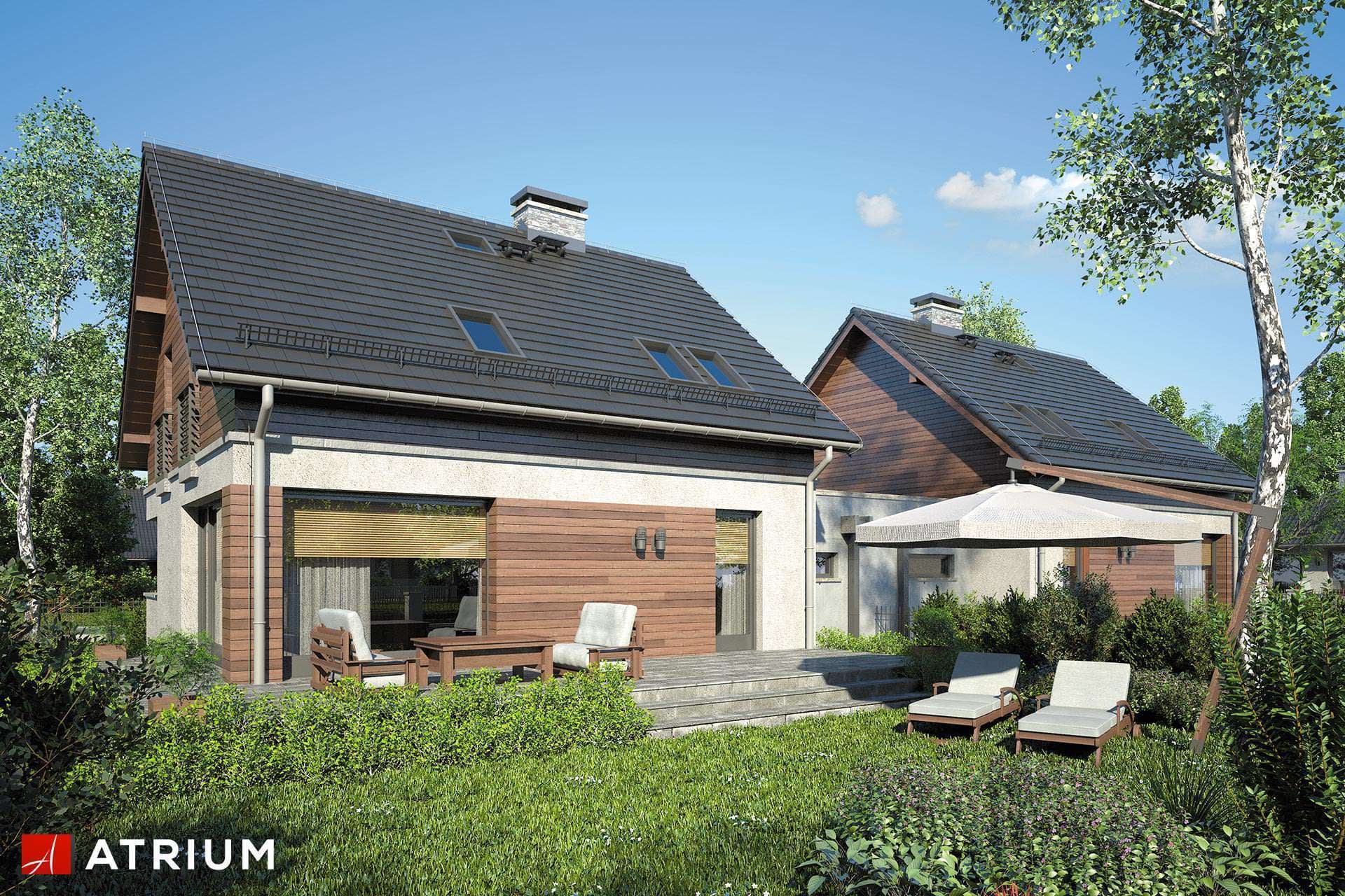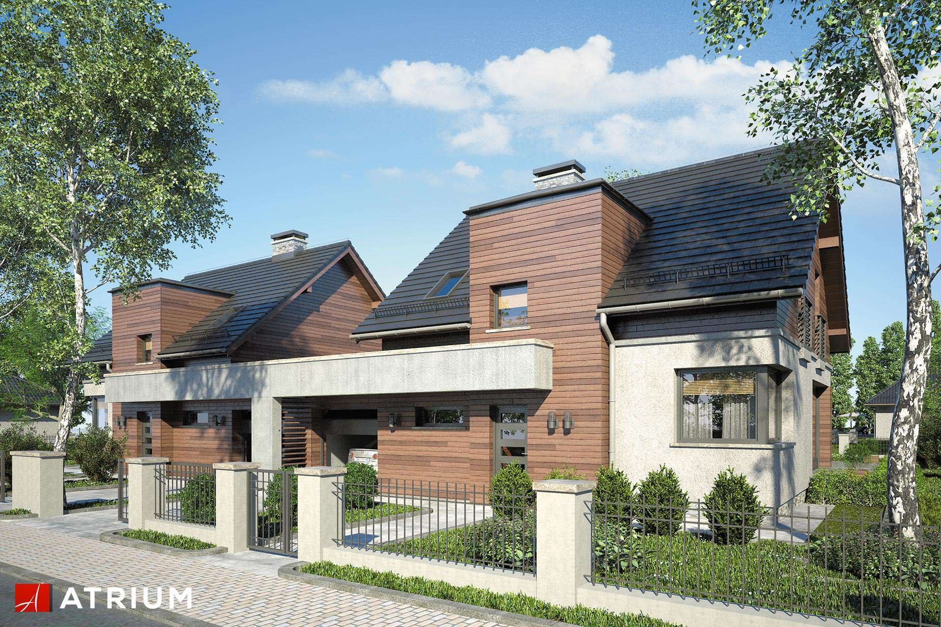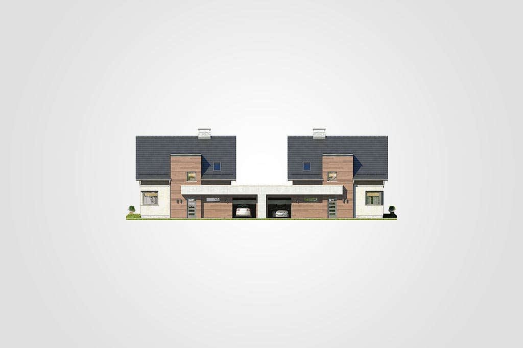 Dom bliźniaczy, parterowy z poddaszem użytkowym, z garażem w segmencie