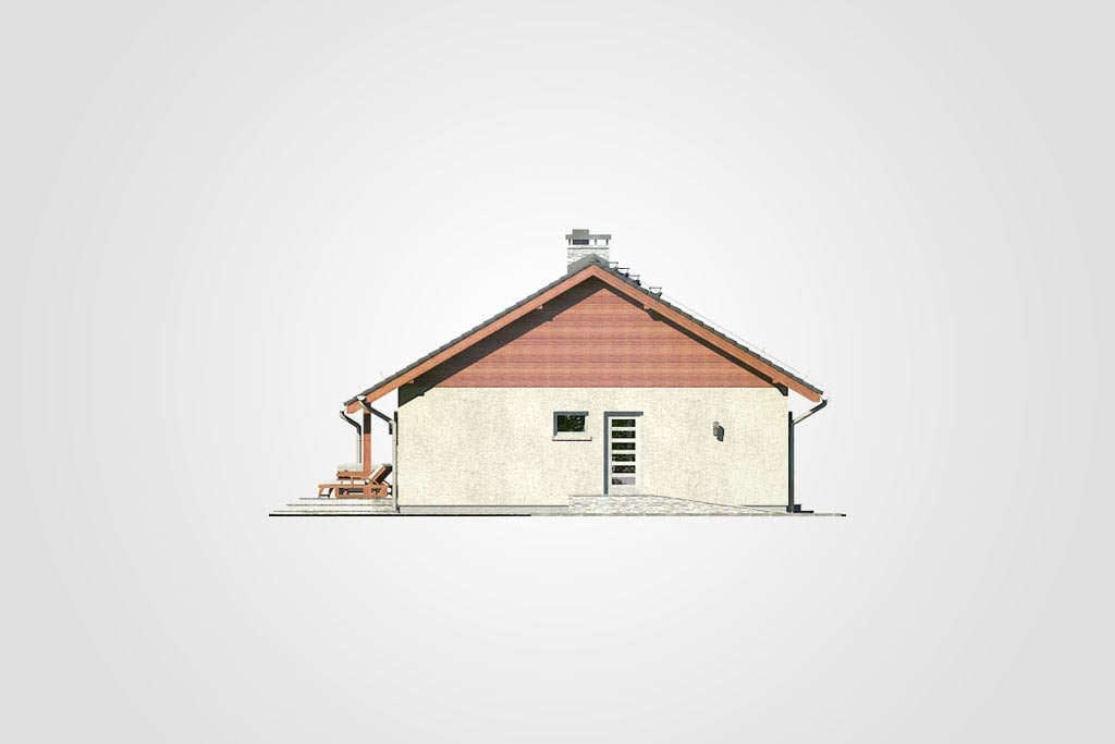Niewielki, parterowy dom z klasycznym dwuspadowym dachem, przestronnym, odkrytym tarasem, bez podpiwniczenia i garażu