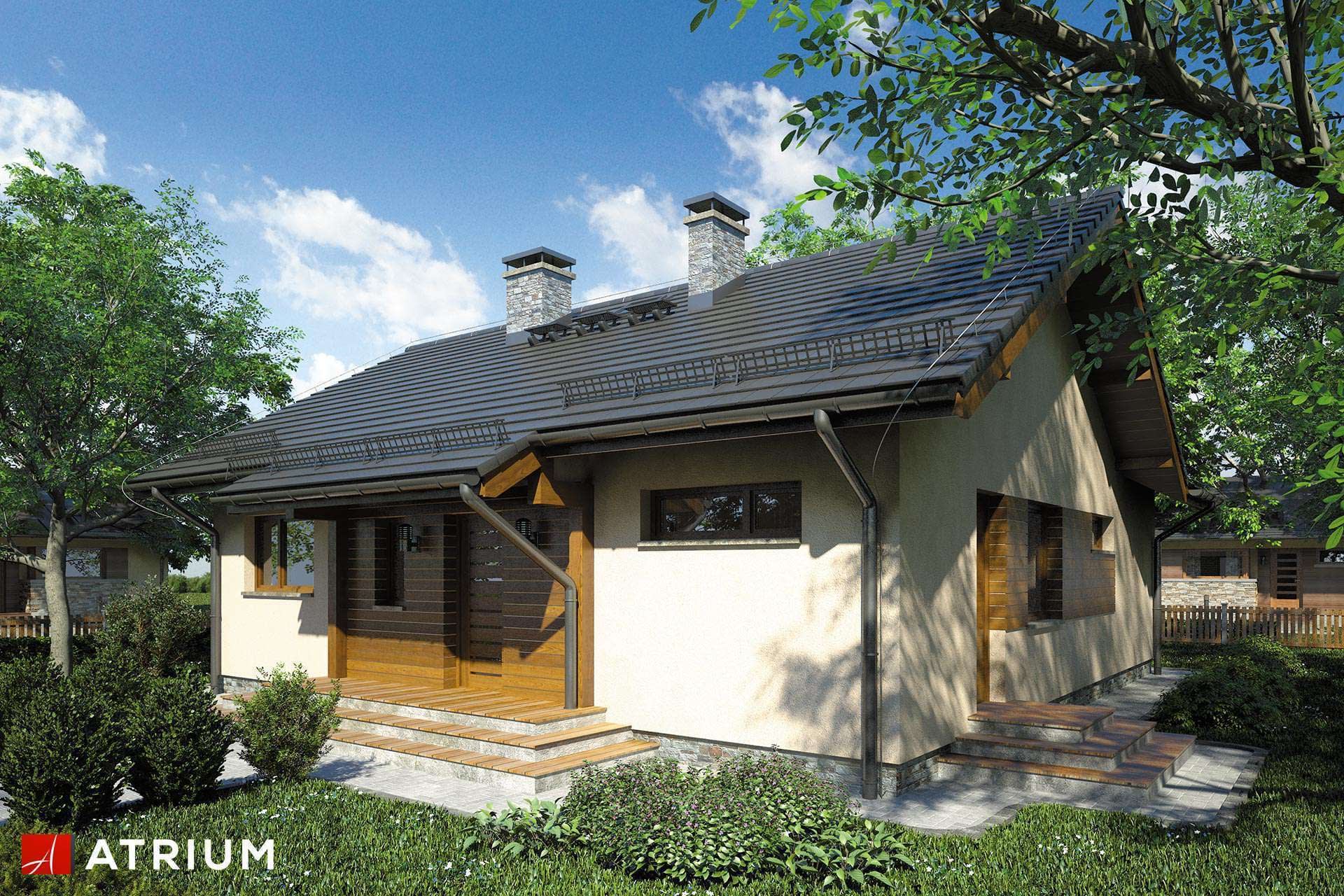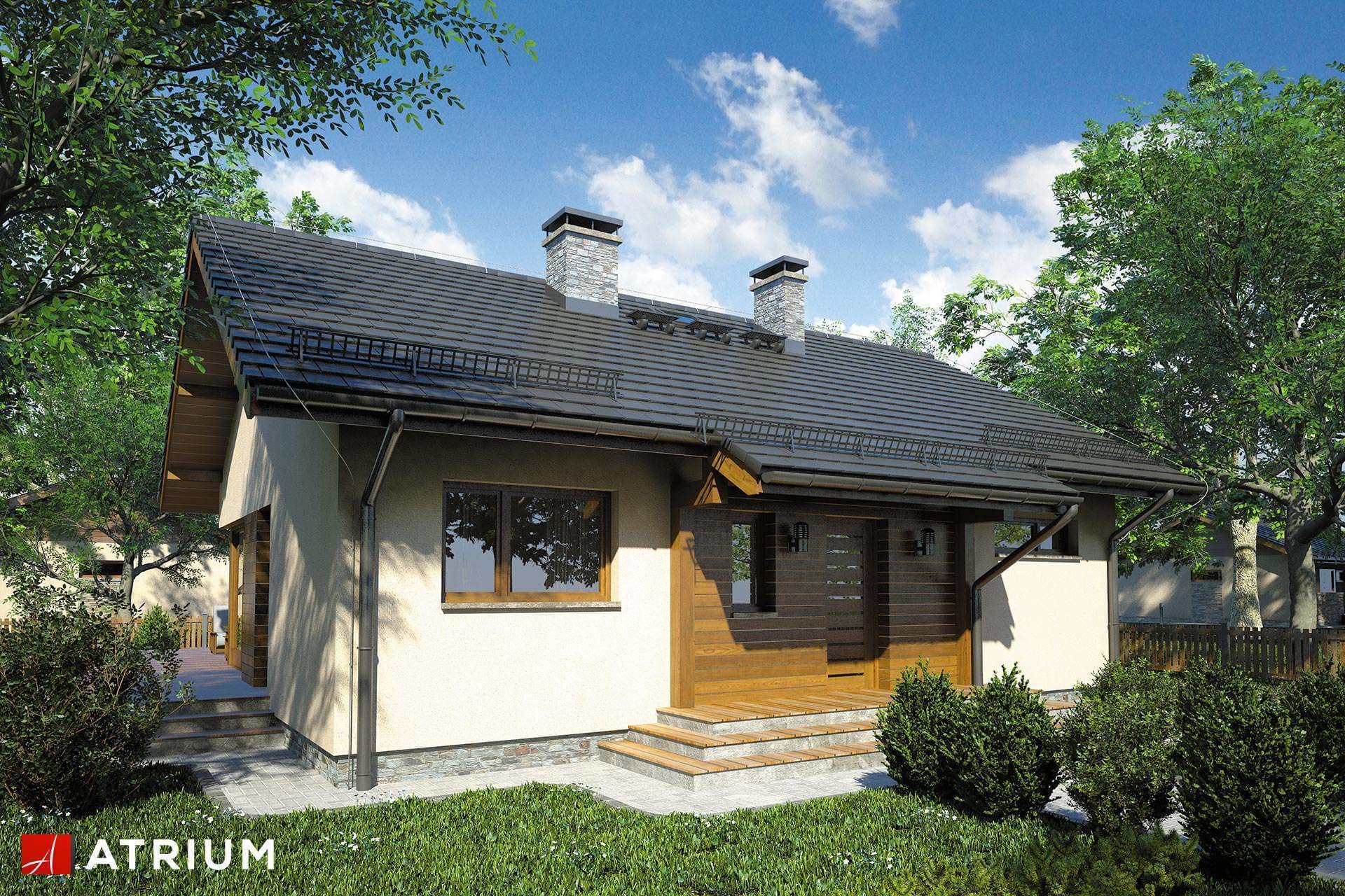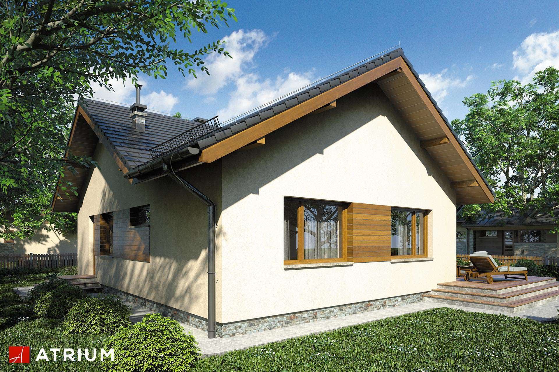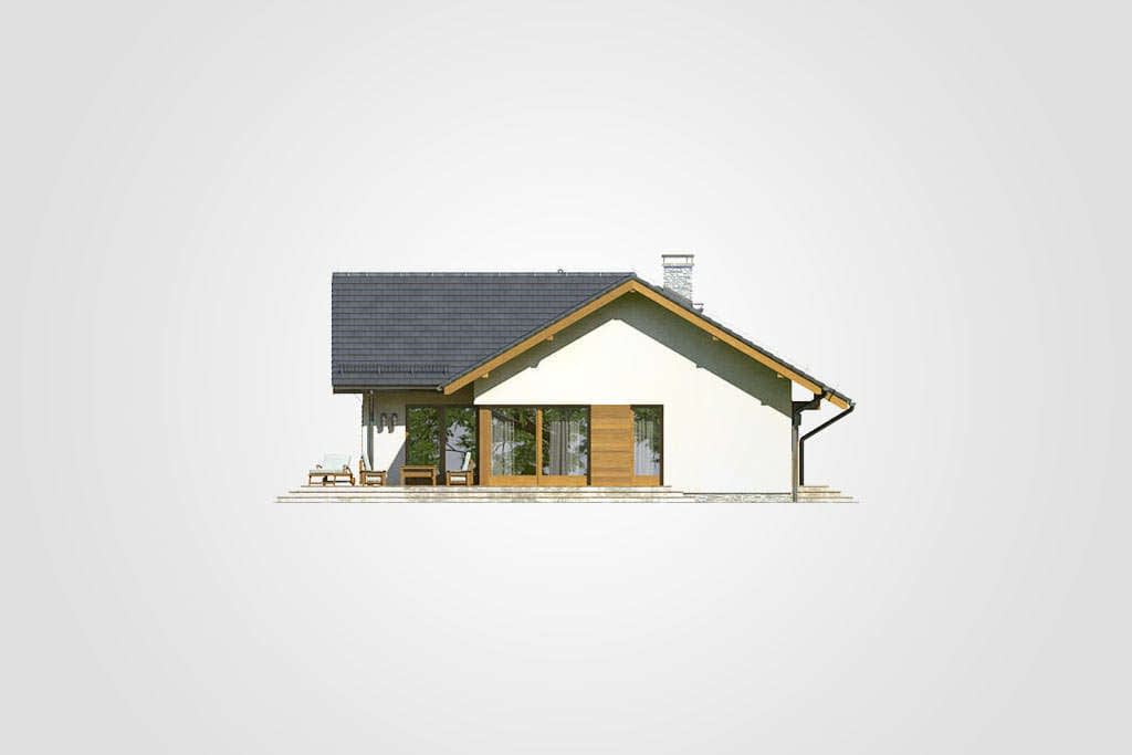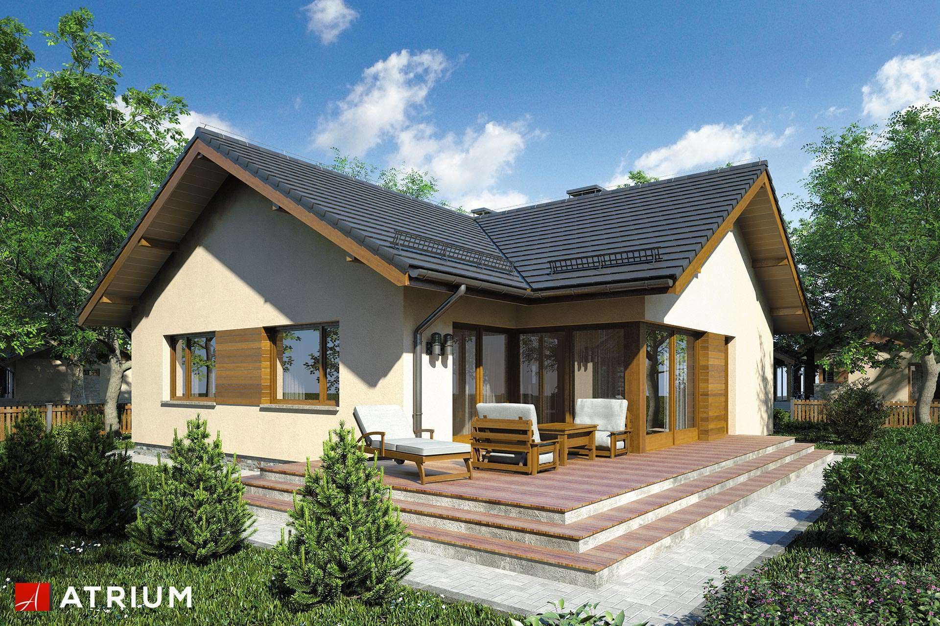 Niewielki dom parterowy z odkrytym, narożnym tarasem wypoczynkowym, energooszczędny