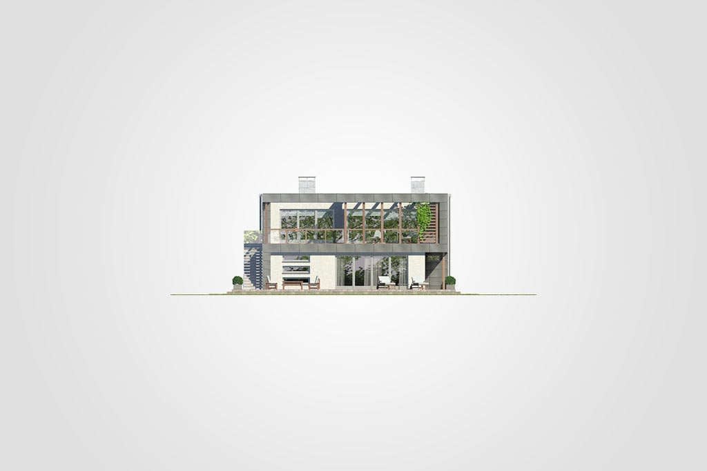 Nowoczesny energooszczędny piętrowy dom z płaskim dachem, strefa dzienna na piętrze, widokowy taras, garaż 2-stanowiskowyKonstrukcja