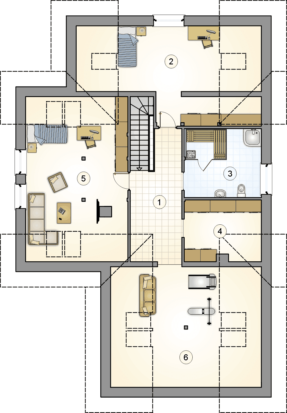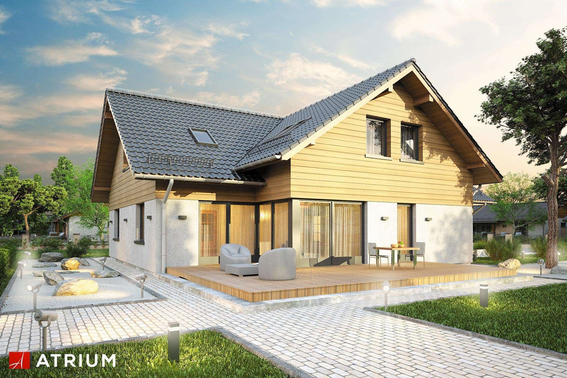 Parterowy dom z poddaszem użytkowym, garażem i wiatą, przestronnym, niezadaszonym tarasem, dużą kotłownią oraz saunąKonstrukcja