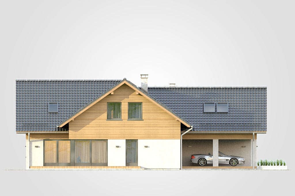 Technologia murowana: Pustak ceramiczny gr. 30 cm + ocieplenie w systemie Termo Organika. Pokrycie dachu dachówką cementową. Brama garażowa i drzwi zewnętrzne marki Hörmann.Rzuty