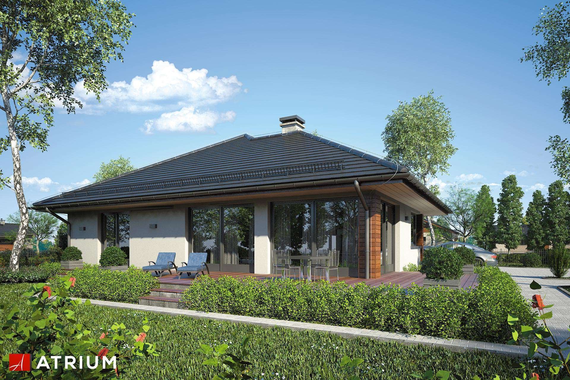Parterowy dom z 4 sypialniami, wielospadowym dachem oraz garażem dwustanowiskowym, na działki z wjazdem od południa