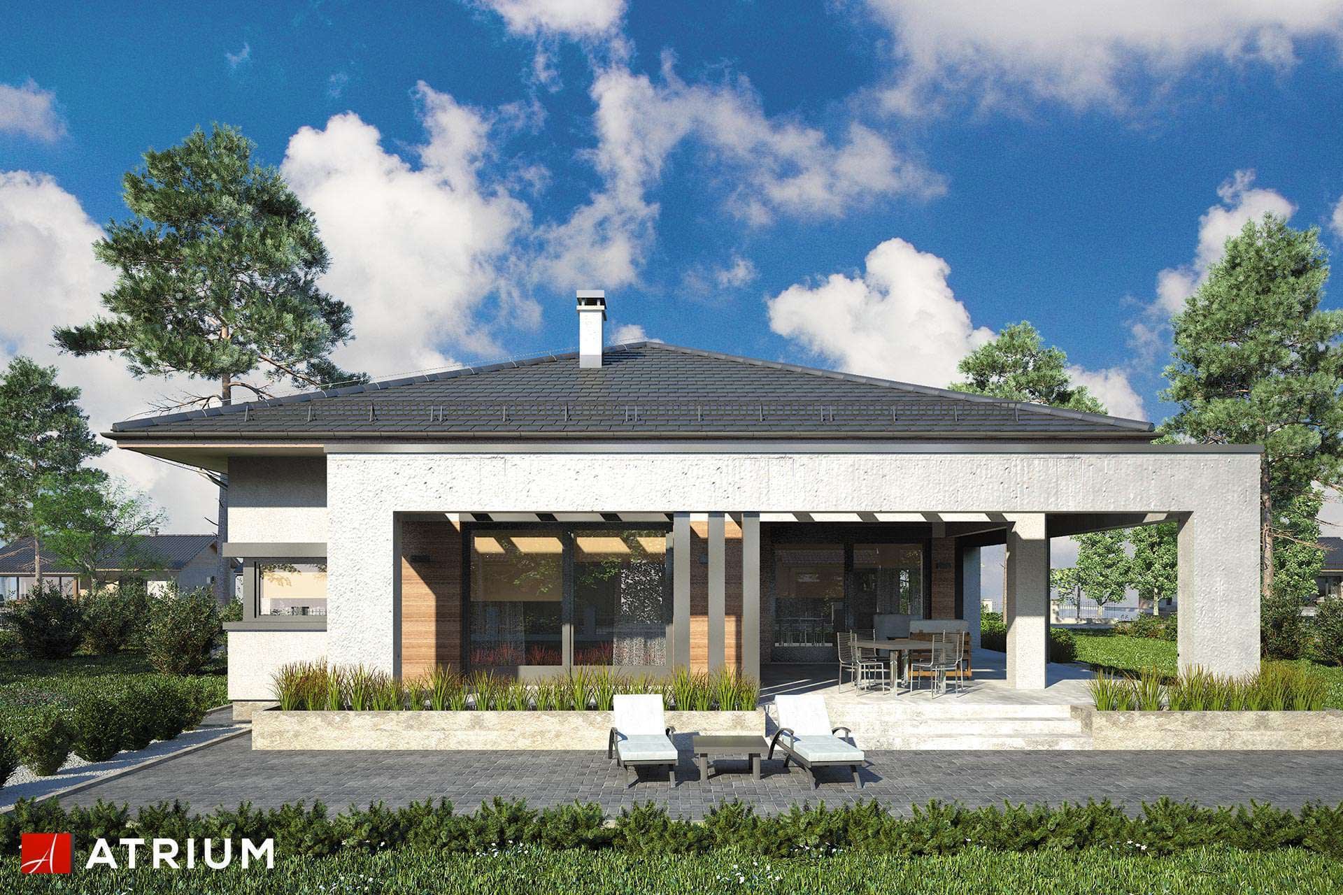 Nowoczesny dom parterowy z pergolą, zadaszonym tarasem oraz garażem dwustanowiskowymKonstrukcja