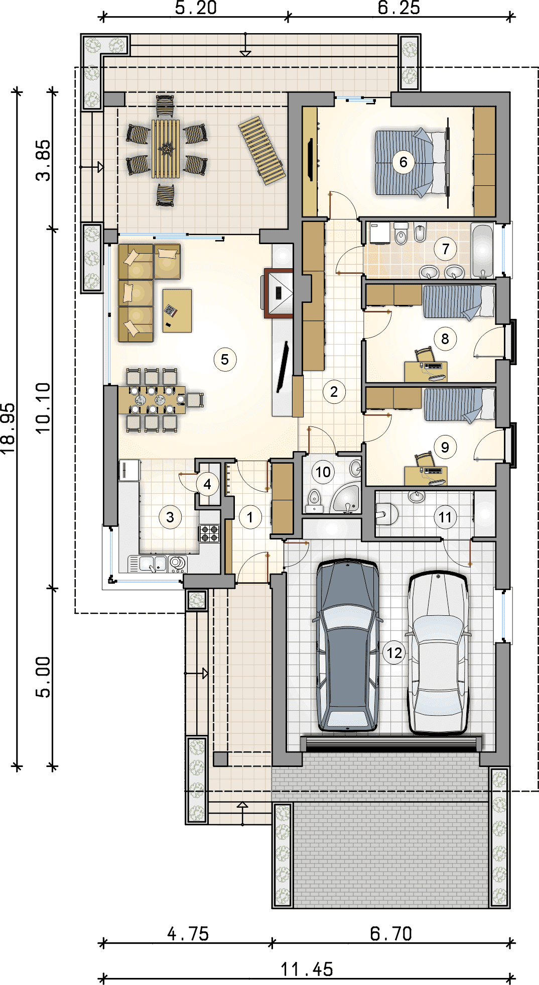 Dom parterowy z dwustanowiskowym garażem i zadaszonym tarasemKonstrukcja