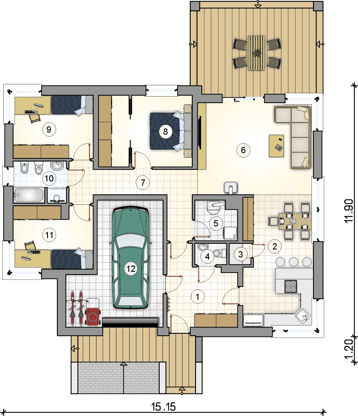 - przeprojektowanie garażu na dwustanowiskowy,