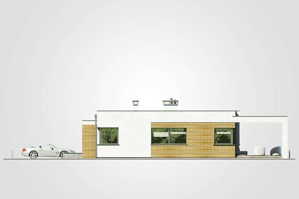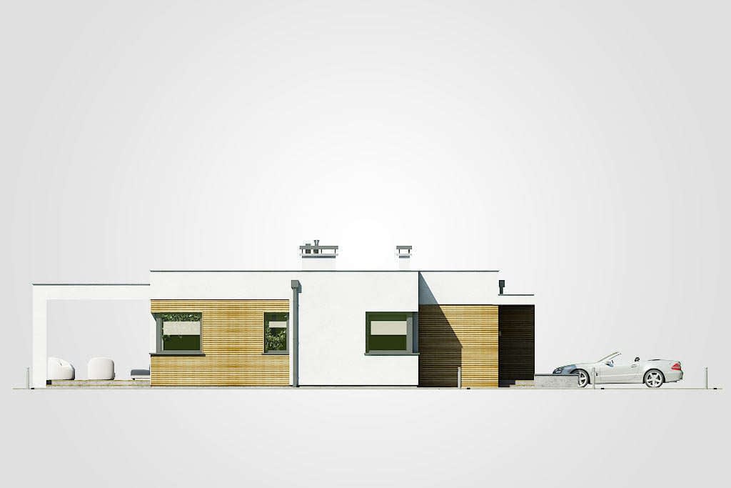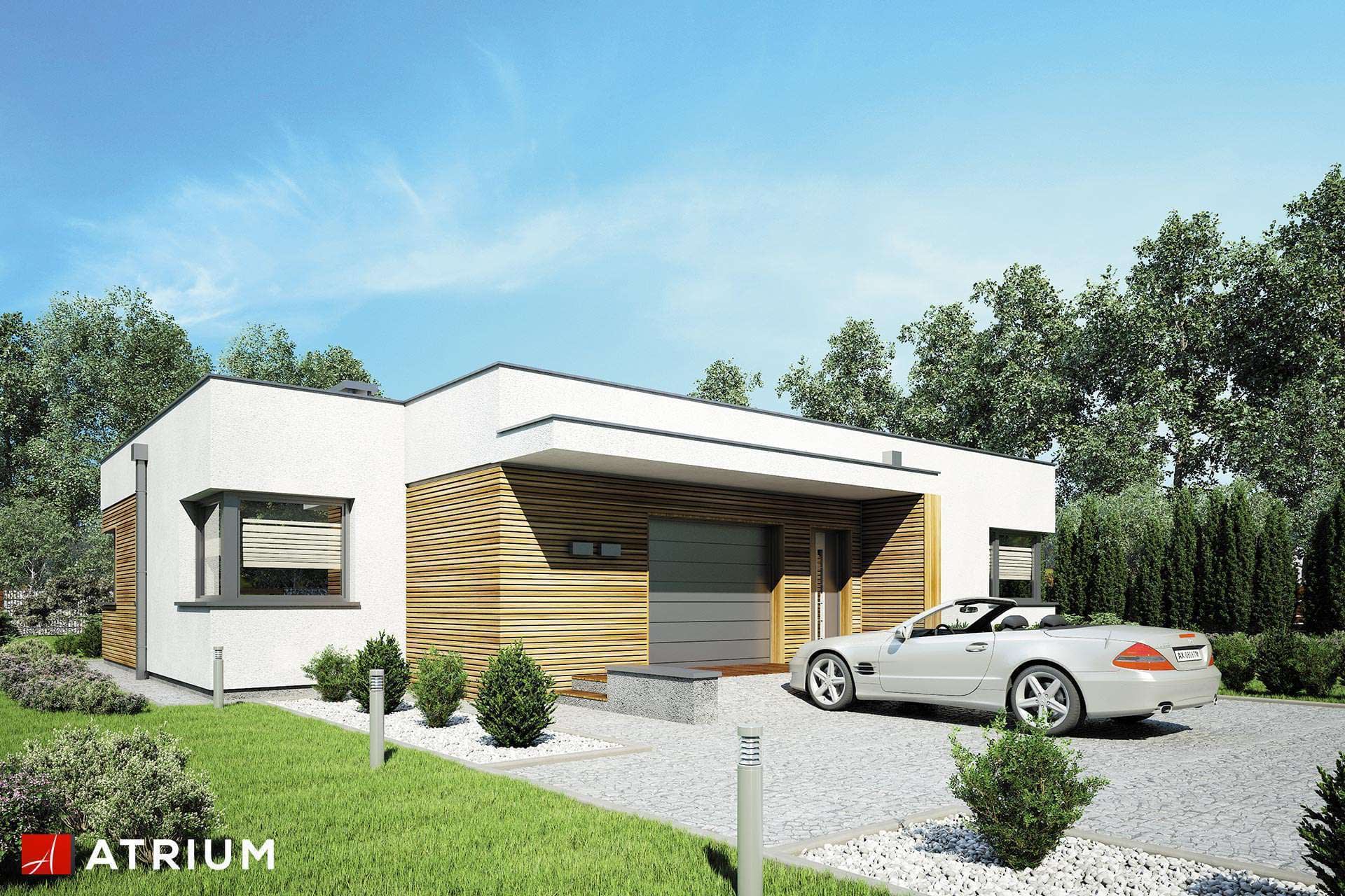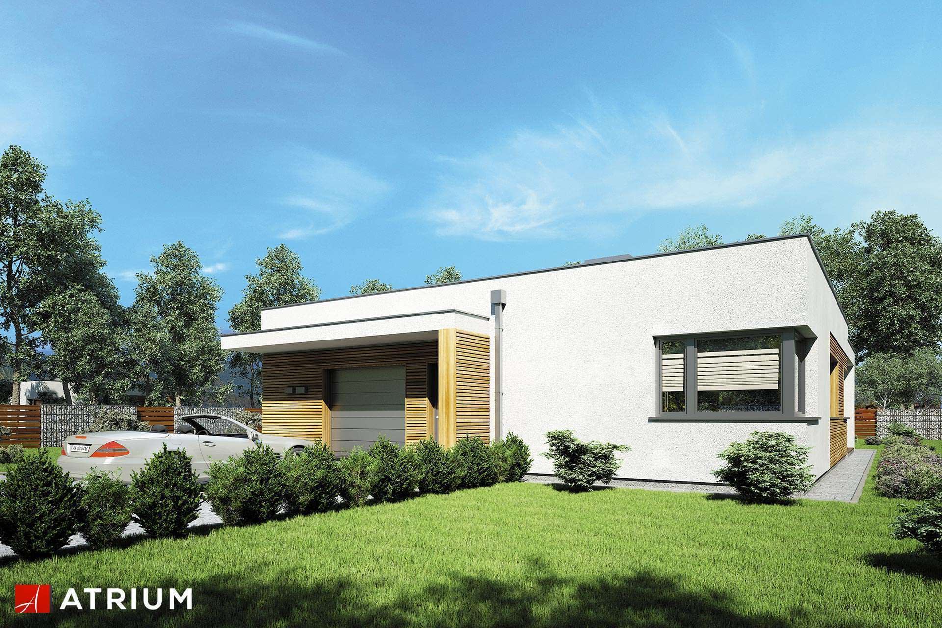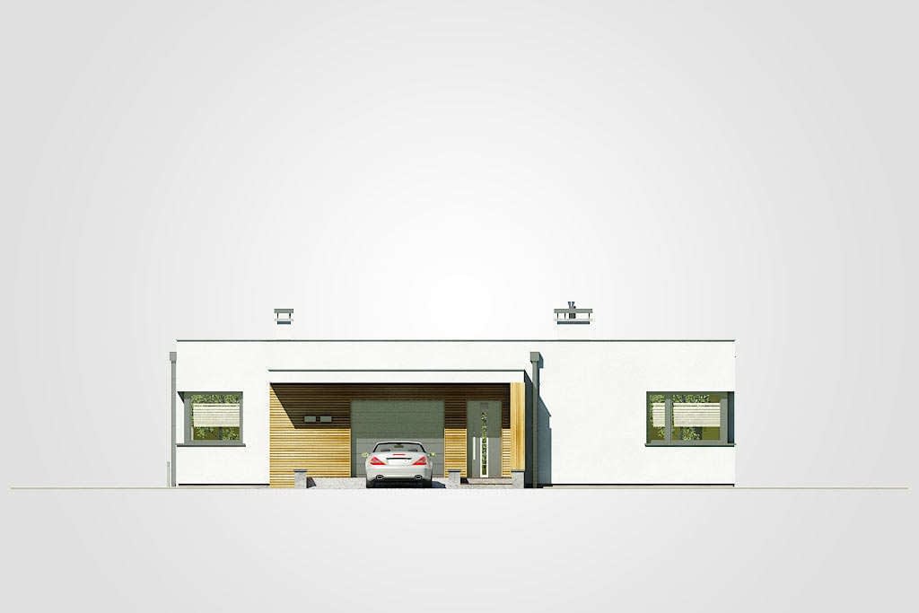 Dom parterowy o nowoczesnej bryle z płaskim dachem i jednostanowiskowym garażemKonstrukcja