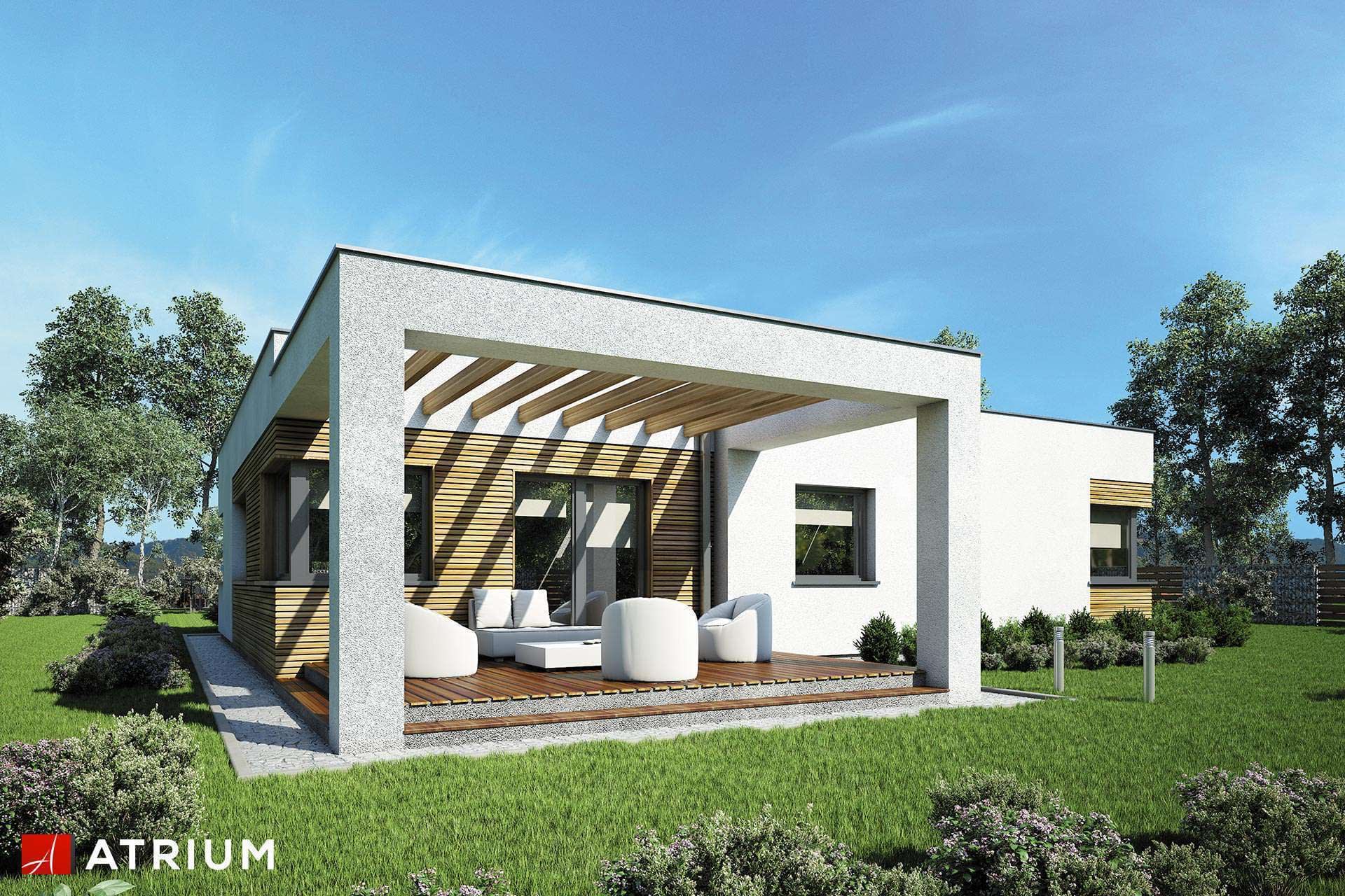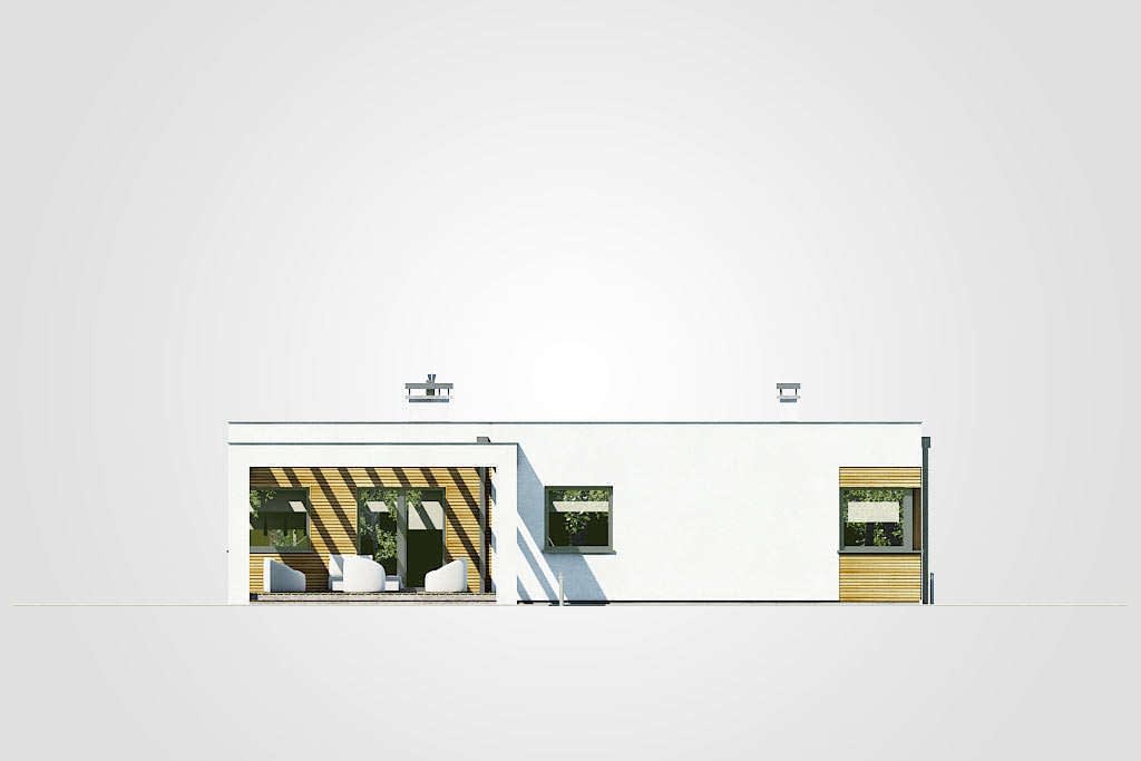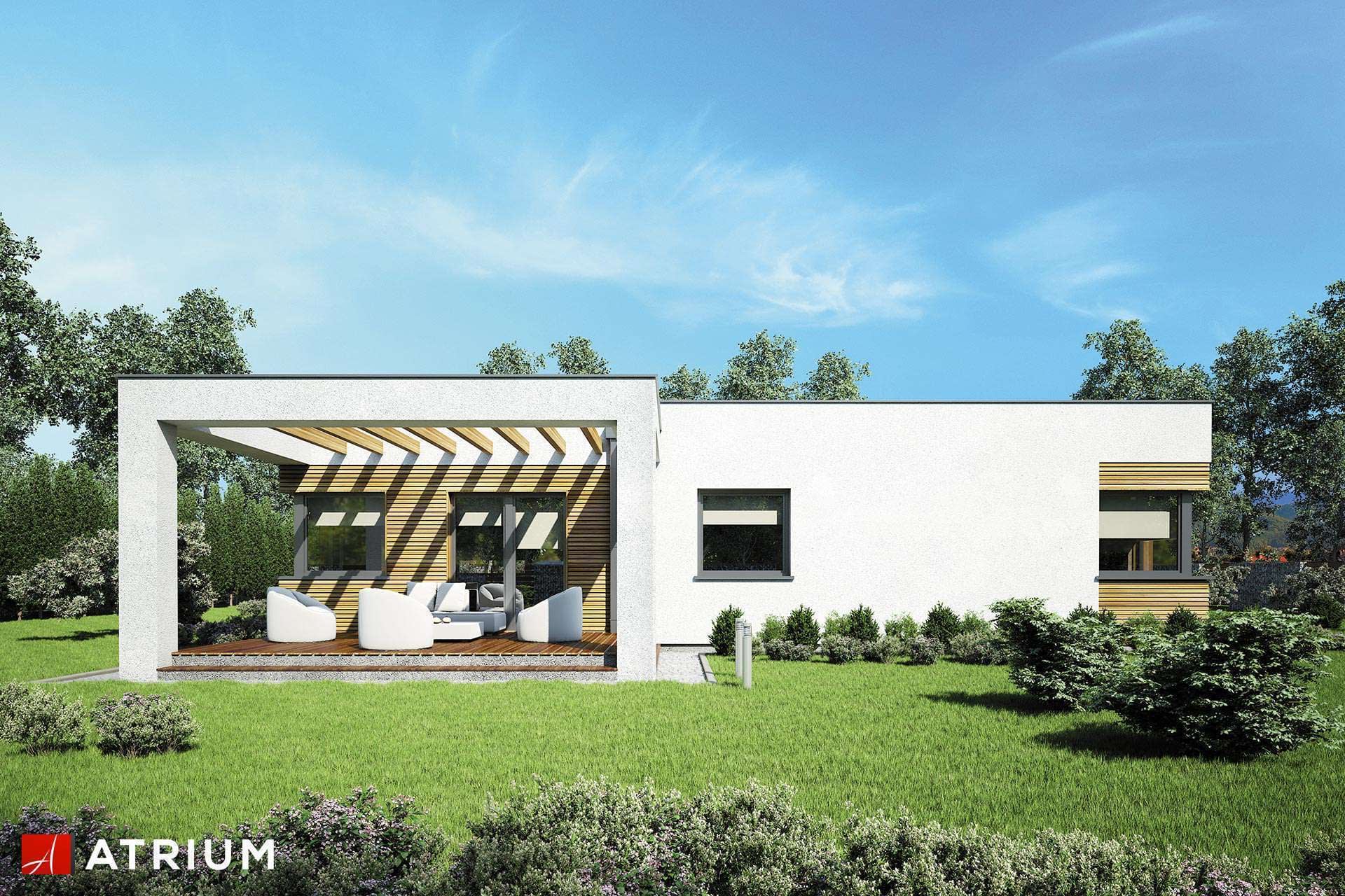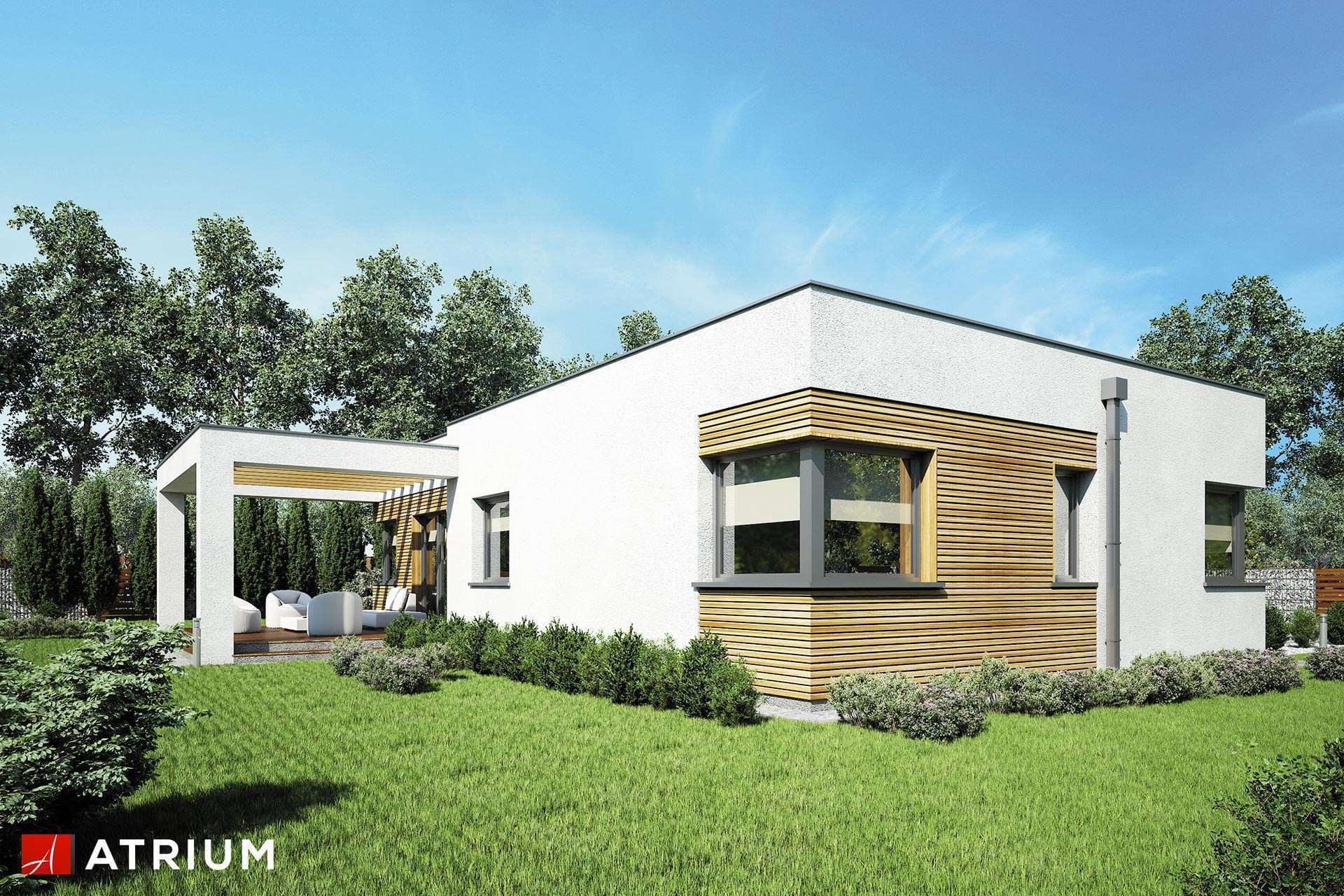 Dom parterowy o nowoczesnej bryle z płaskim dachem i jednostanowiskowym garażemKonstrukcja