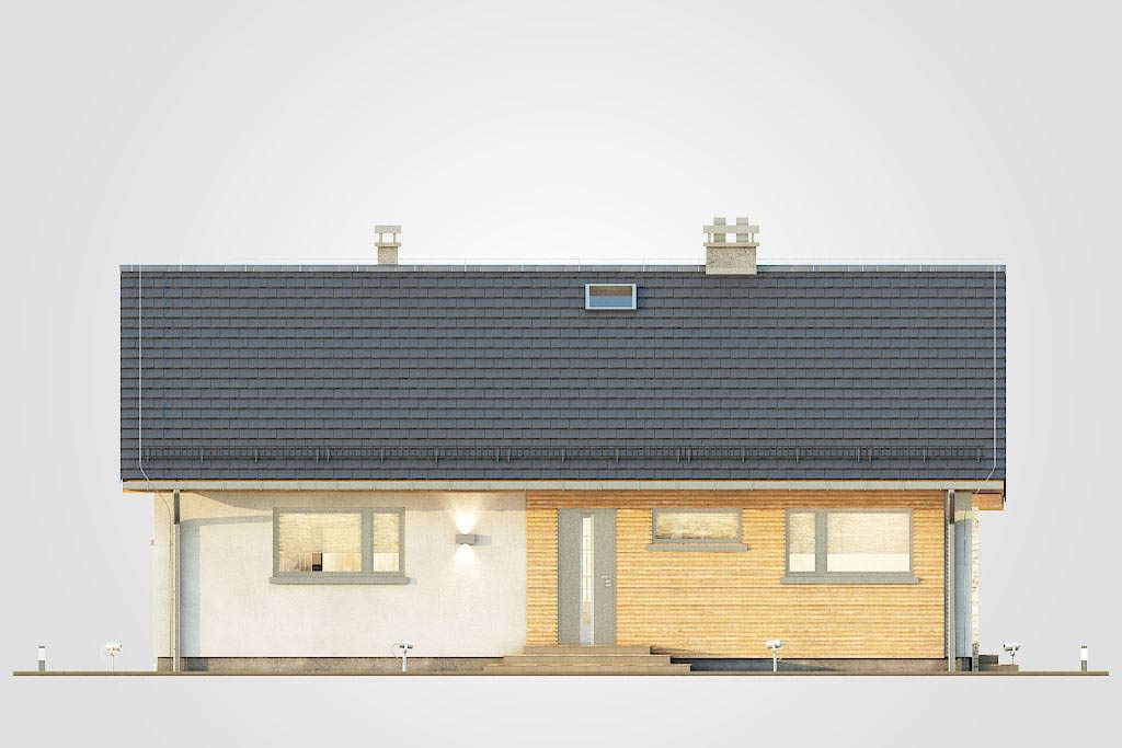 Dom parterowy z dwuspadowym dachem i częściowo zadaszonym tarasem