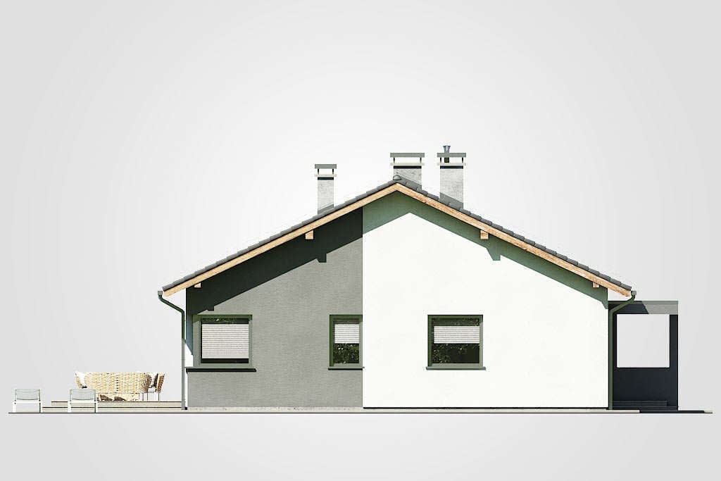 Dom parterowy z dwuspadowym dachem i lekkim stropem, z czterema sypialniami