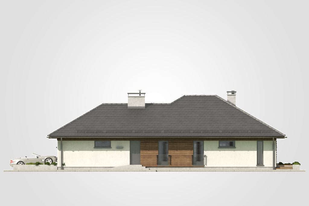 Dom parterowy z dwustanowiskowym garażem, wielospadowym dachem i zadaszonym tarasemKonstrukcja