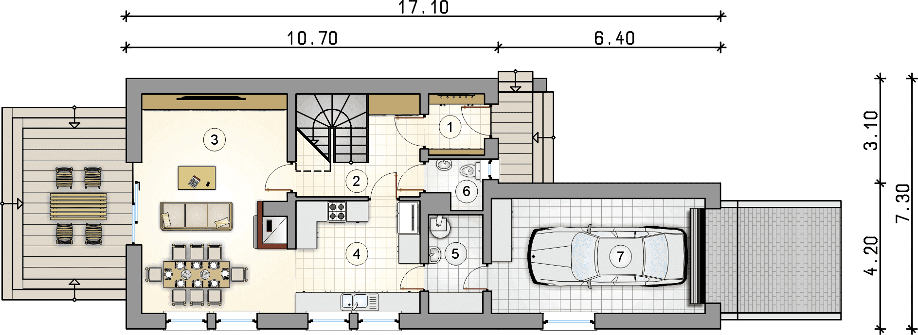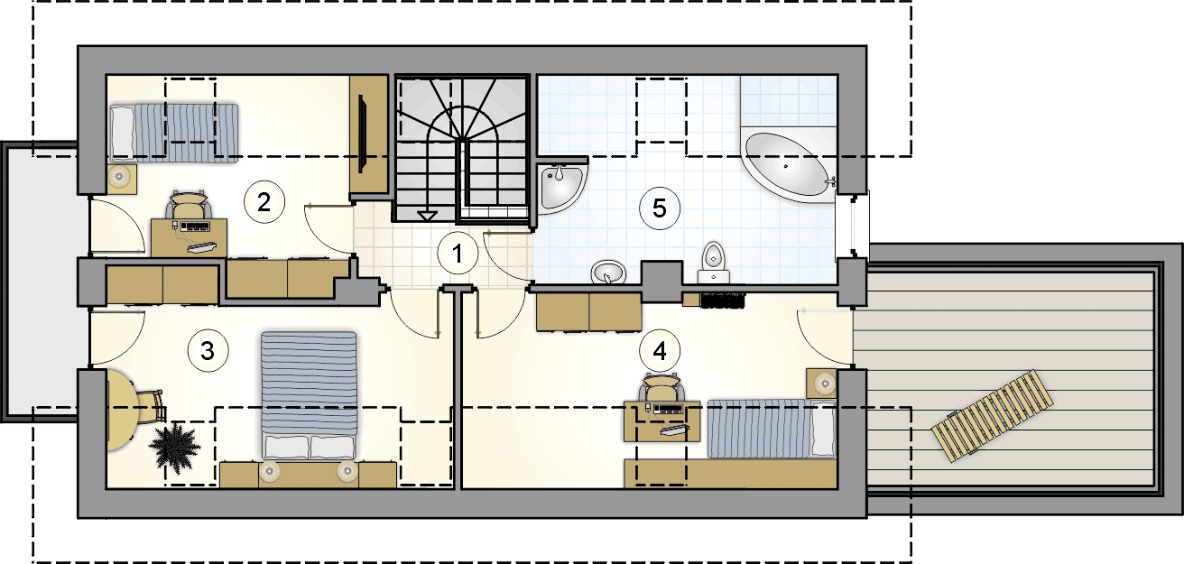 Dom z poddaszem użytkowym, z tarasem nad garażem, idealny na wąskie działkiKonstrukcja