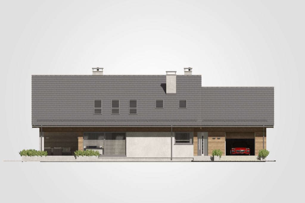 Dom jednorodzinny, parterowy z poddaszem użytkowym, z zadaszonym tarasem, z garażem, z kotłownią na paliwo stałe, na działki z wjazdem od południa