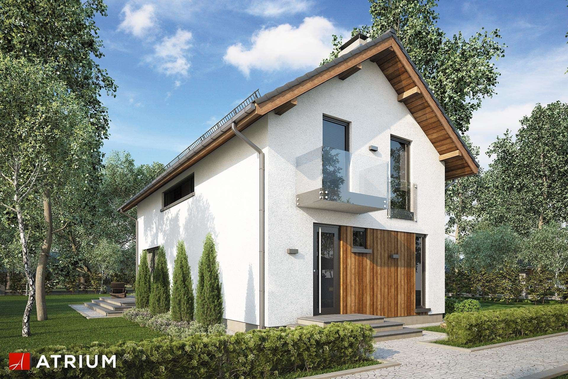 Dom jednorodzinny, parterowy z poddaszem użytkowym, przykryty dwuspadowym dachem, idealny na wąskie działki