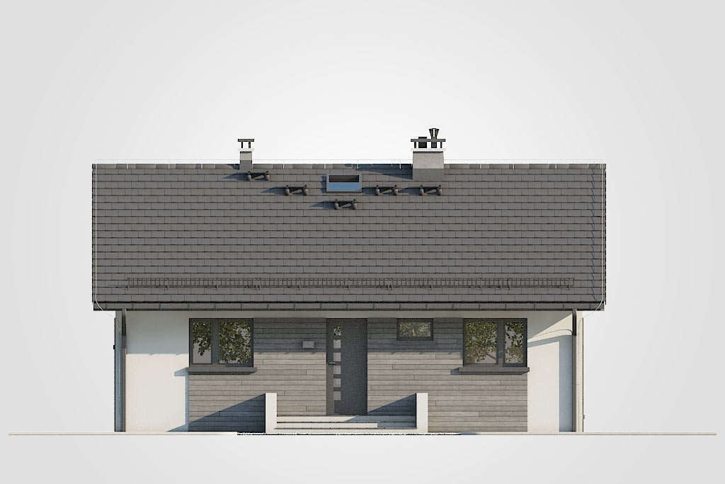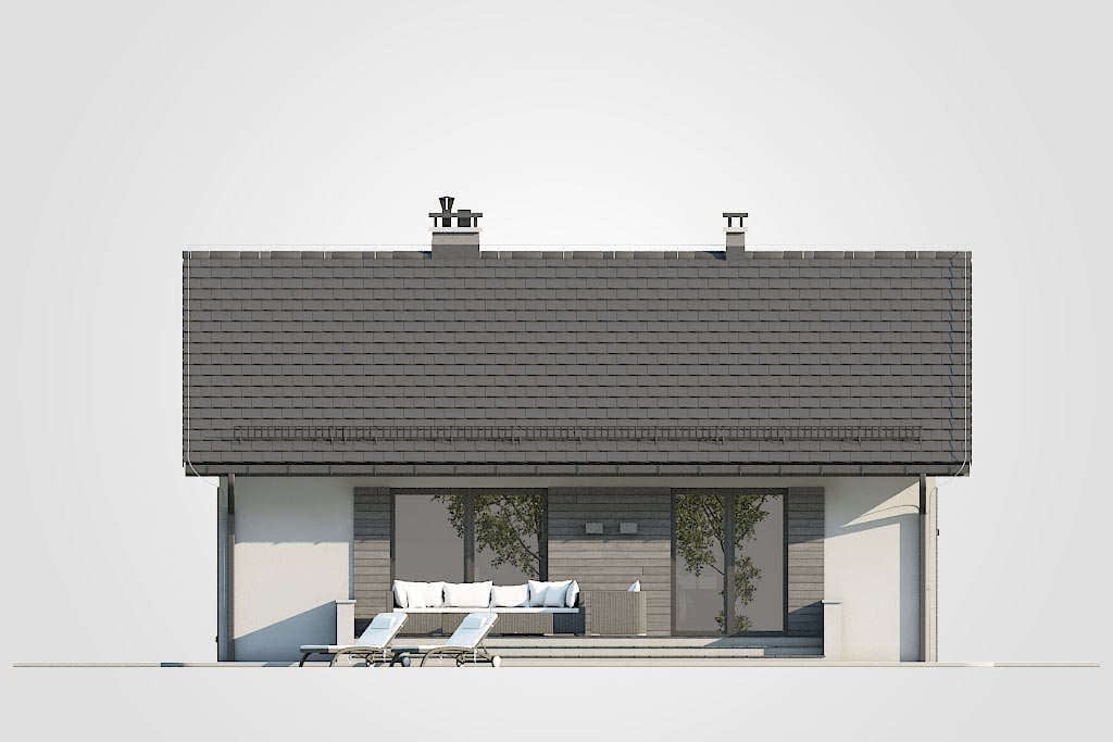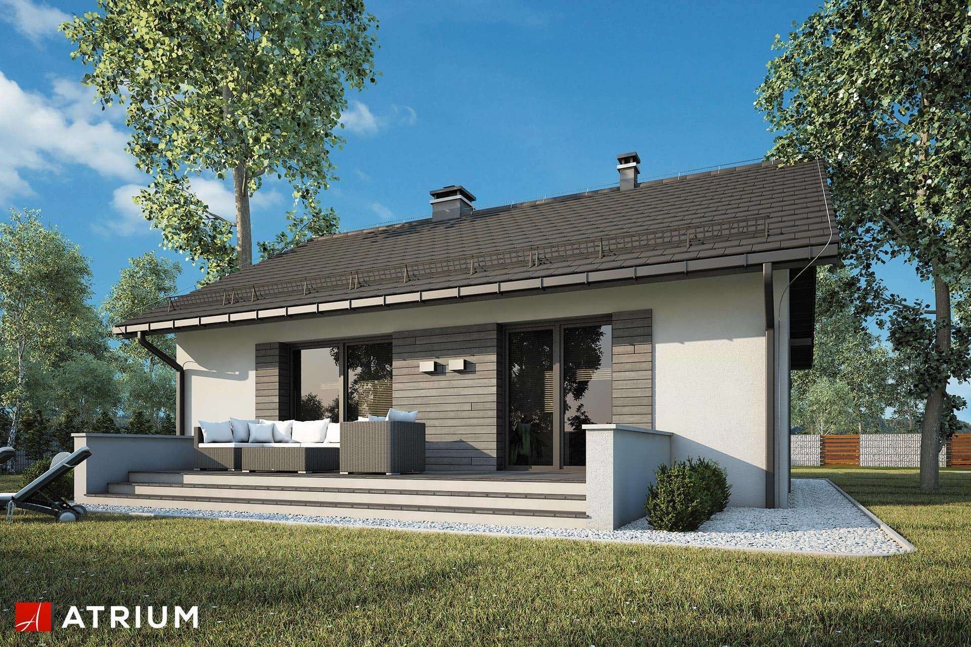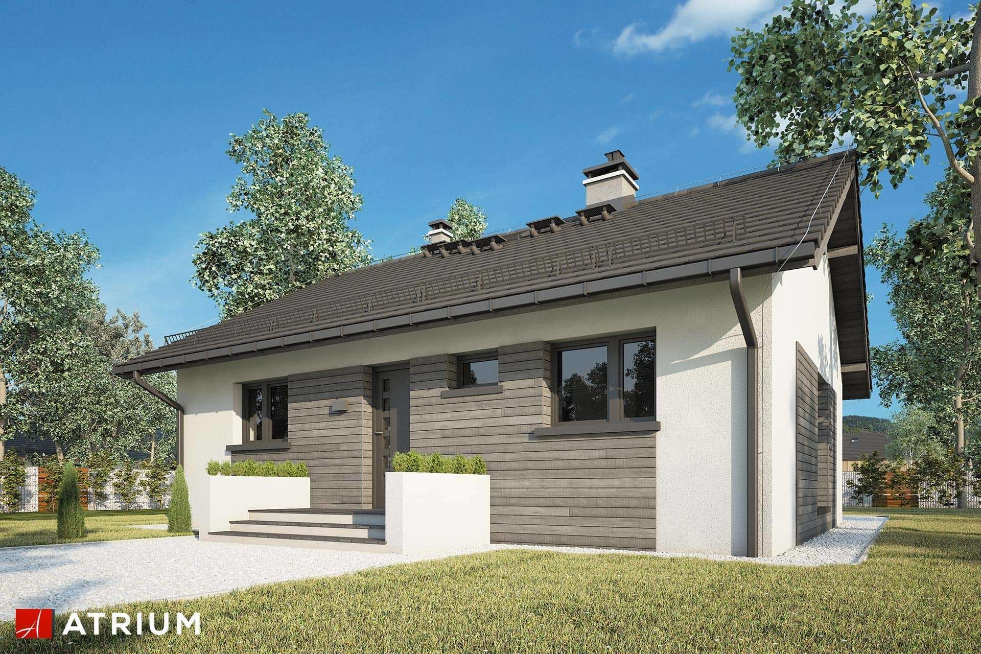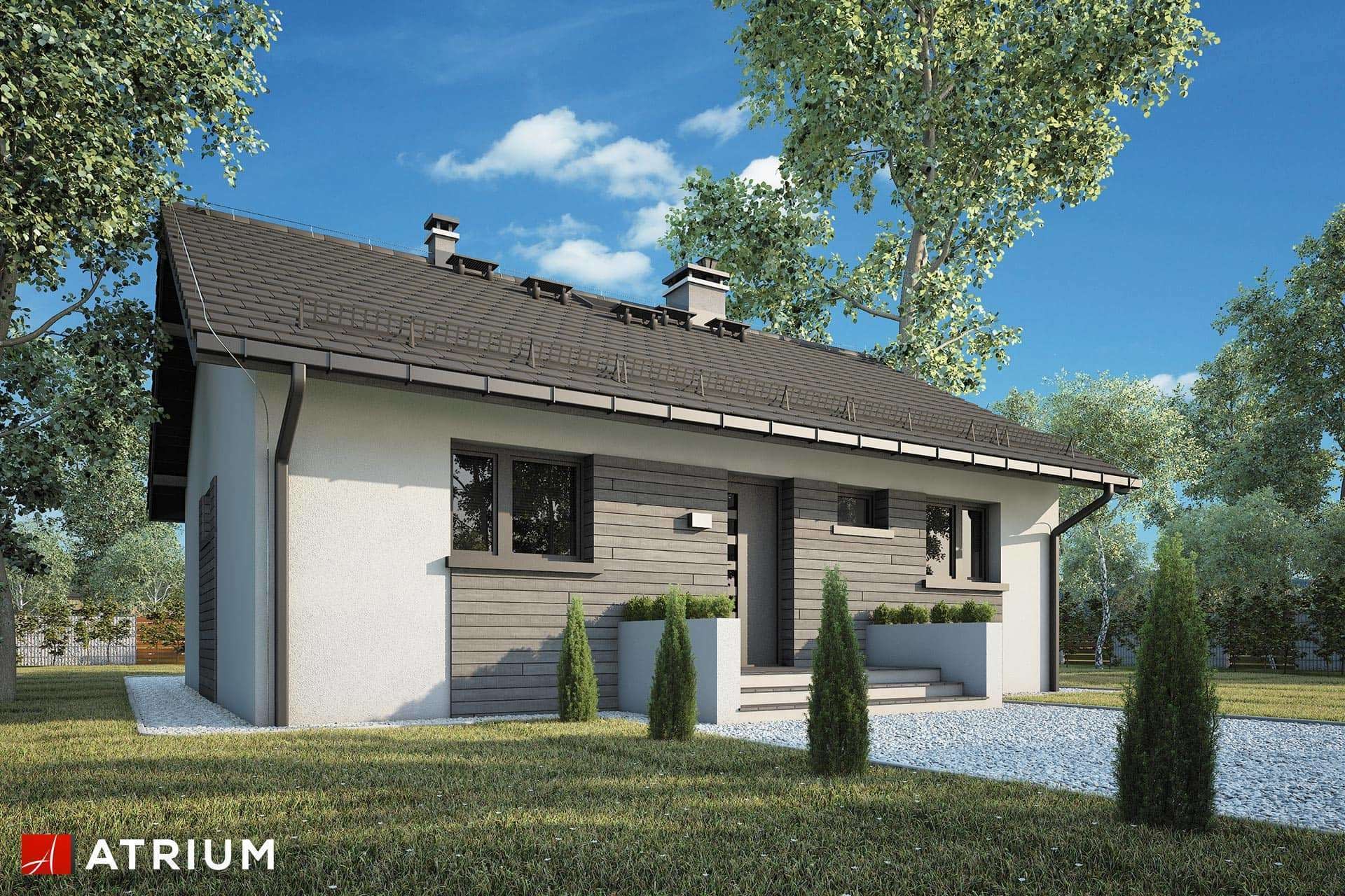 Mały parterowy dom bez garażu, z dwuspadowym dachem, tani w budowie