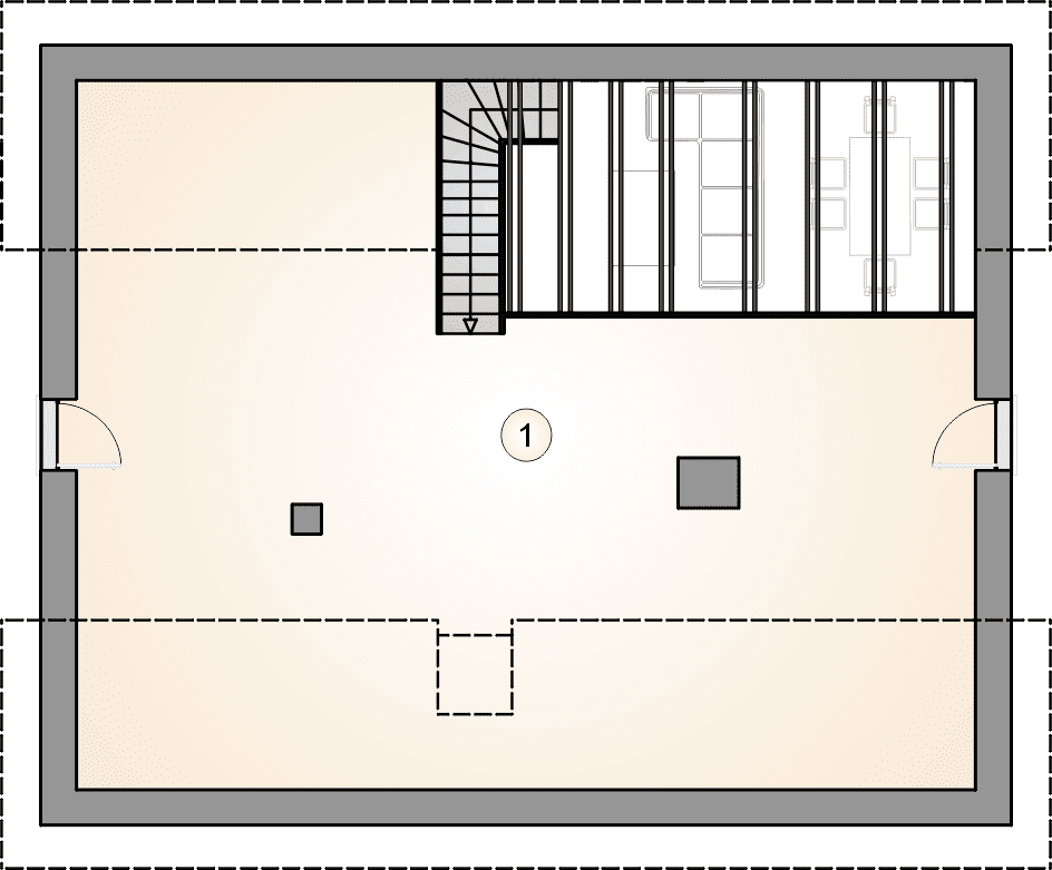 Parterowy dom ze strychem do adaptacji i otwartą przestrzenią nad pokojem dziennym, bez garażu