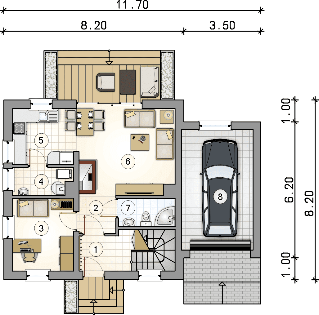 - przeprojektowanie garażu na dwustanowiskowy,