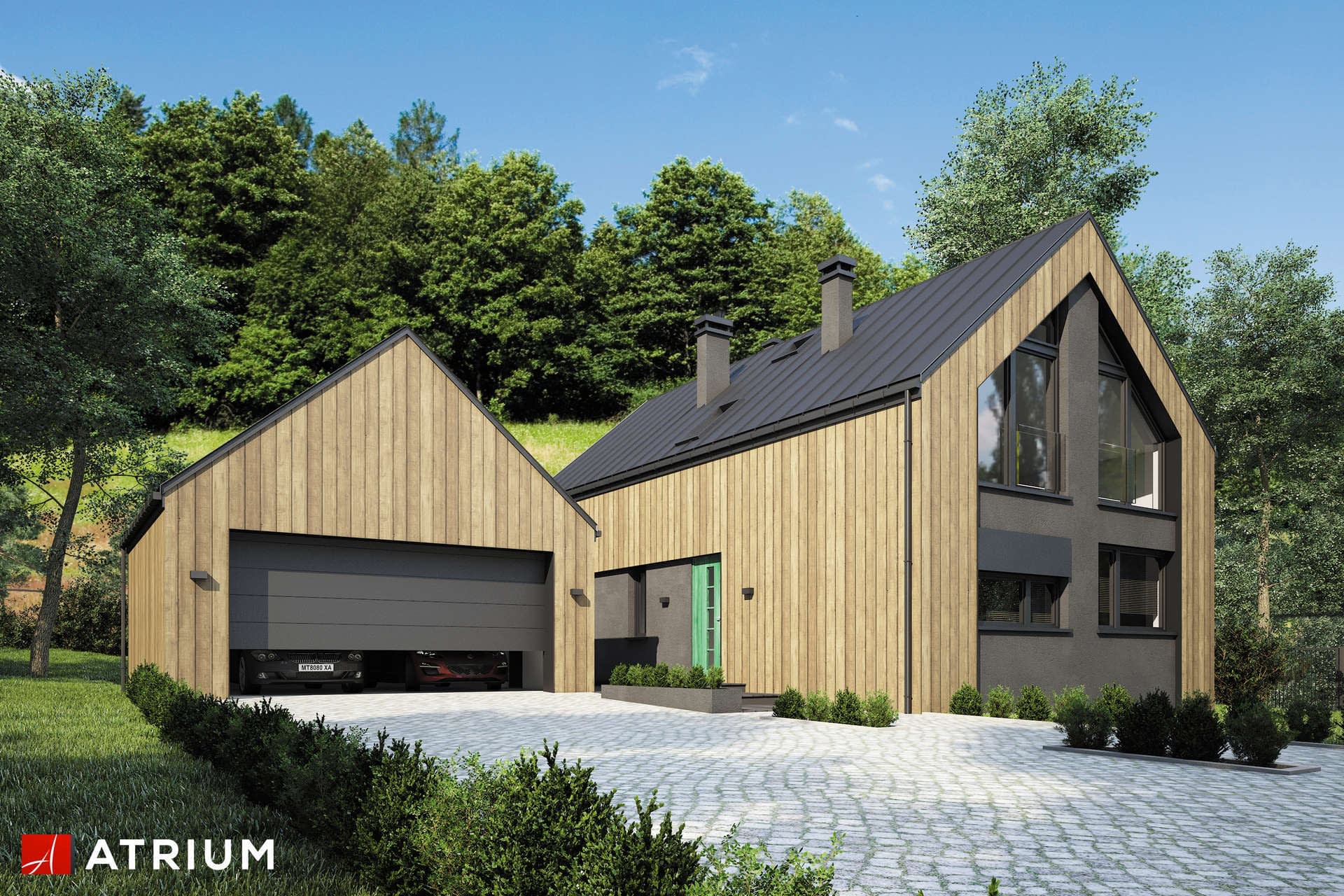 Nowoczesny dom z poddaszem użytkowym, w stylu nowoczesnej stodoły, z otwartą przestrzenią nad salonem, garaż jako osobny projekt Z50Konstrukcja