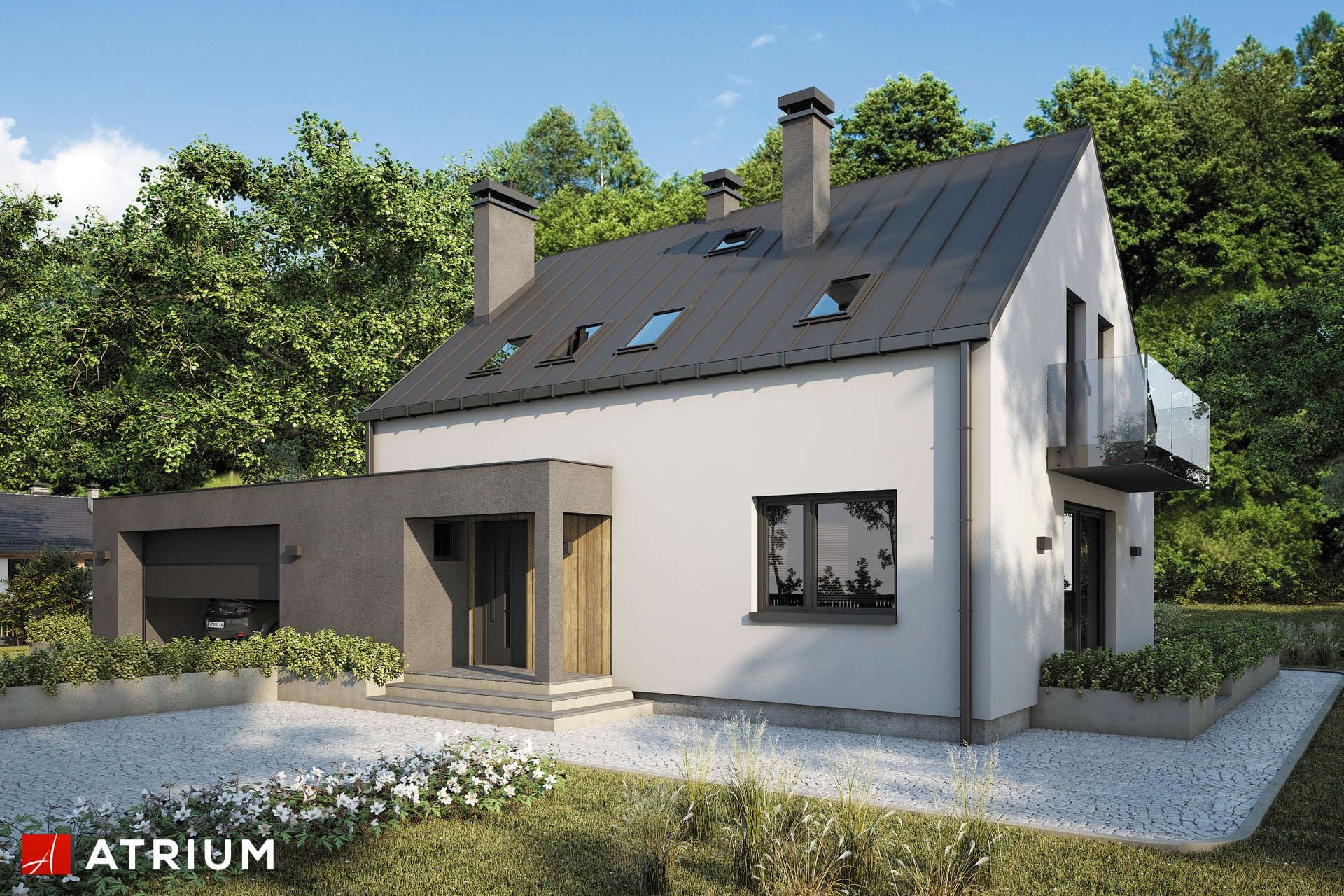 Nowoczesny dom z poddaszem użytkowym i garażem dwustanowiskowym, z dwuspadowym dachem bez okapówKonstrukcja