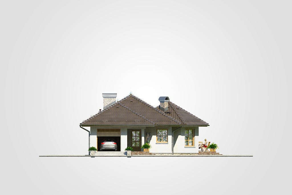 Technologia murowana: Pustak ceramiczny gr. 30 cm + ocieplenie w systemie Termo Organika. Pokrycie dachu dachówką cementową. Brama garażowa i drzwi zewnętrzne marki Hörmann.Rzuty