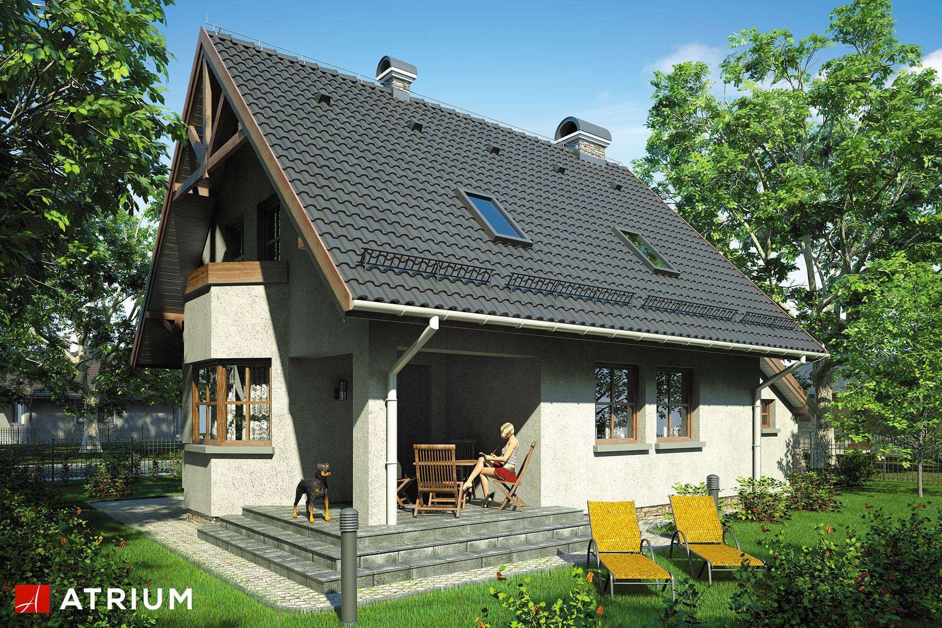Dom parterowy z dwuspadowym dachem, z poddaszem użytkowym i garażem, z przeszklonym ryzalitem, z tarasem w podcieniuKonstrukcja