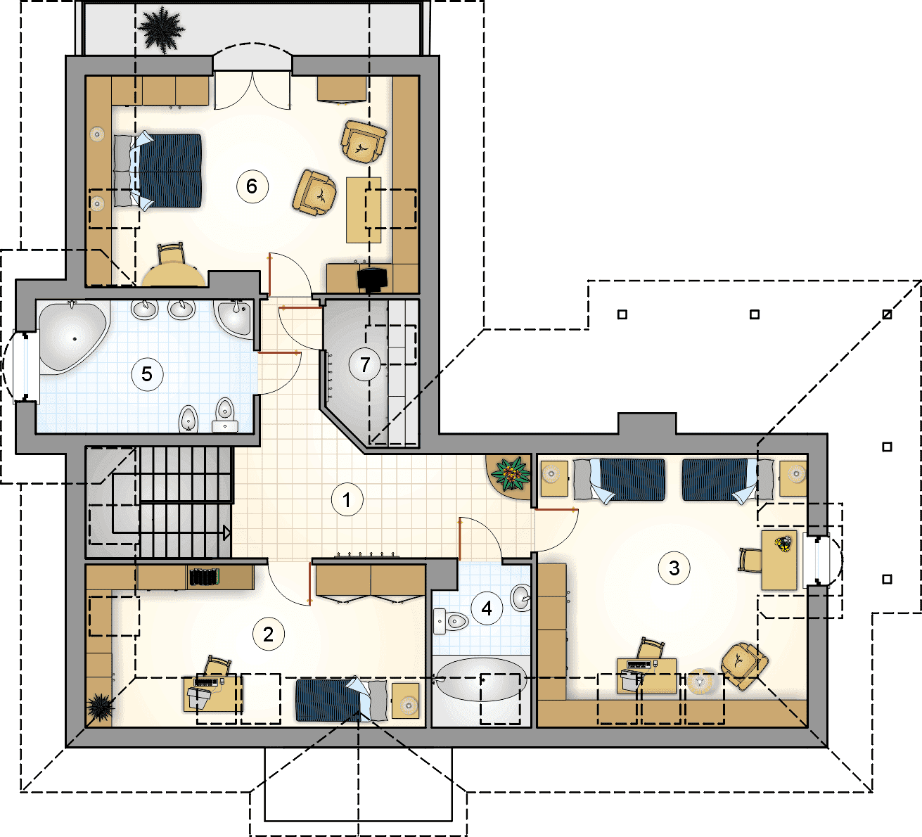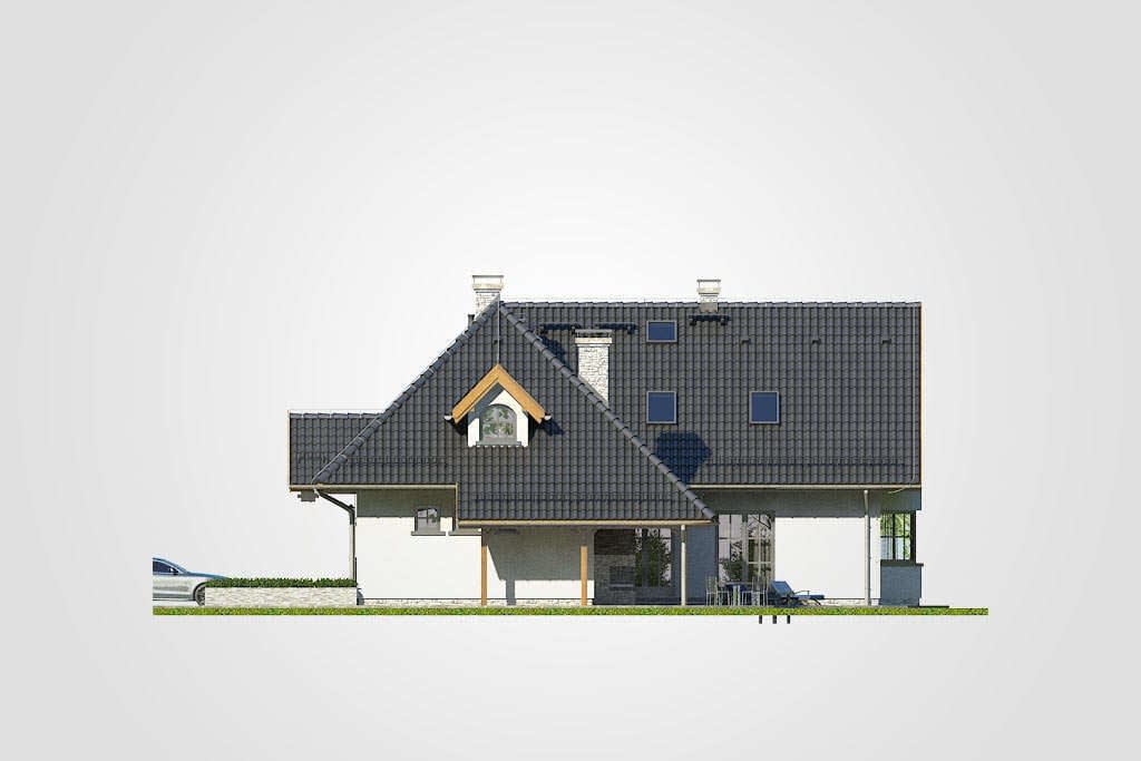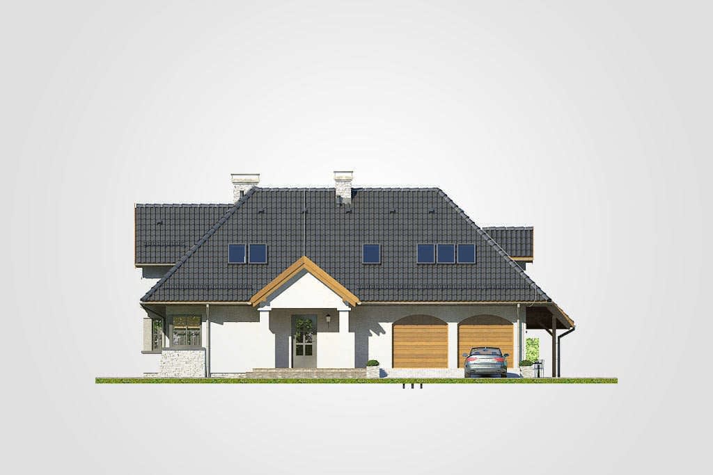 Technologia murowana: Pustak ceramiczny gr. 30 cm + ocieplenie w systemie Termo Organika. Pokrycie dachu dachówką cementową. Brama garażowa i drzwi zewnętrzne marki Hörmann.Rzuty