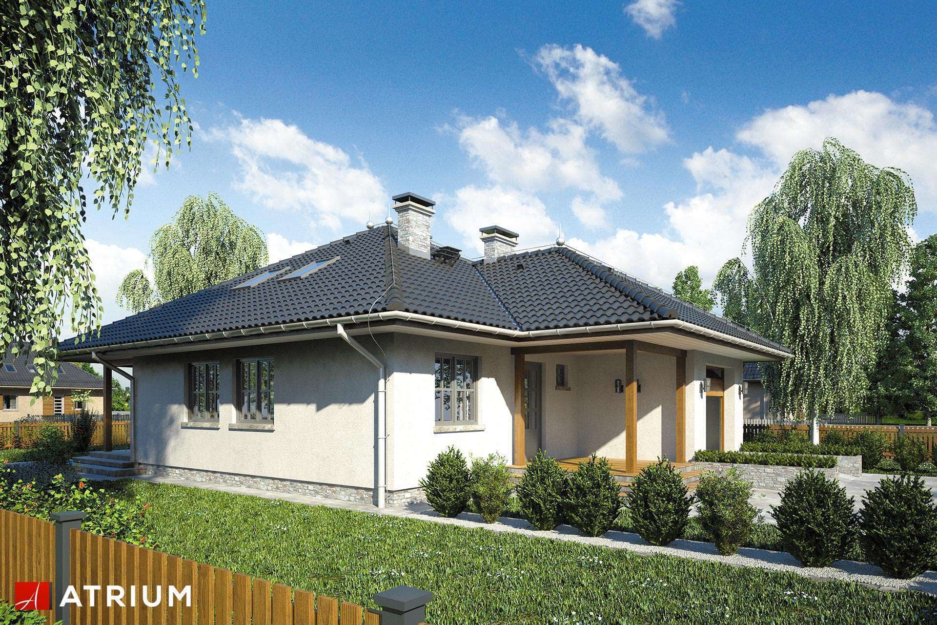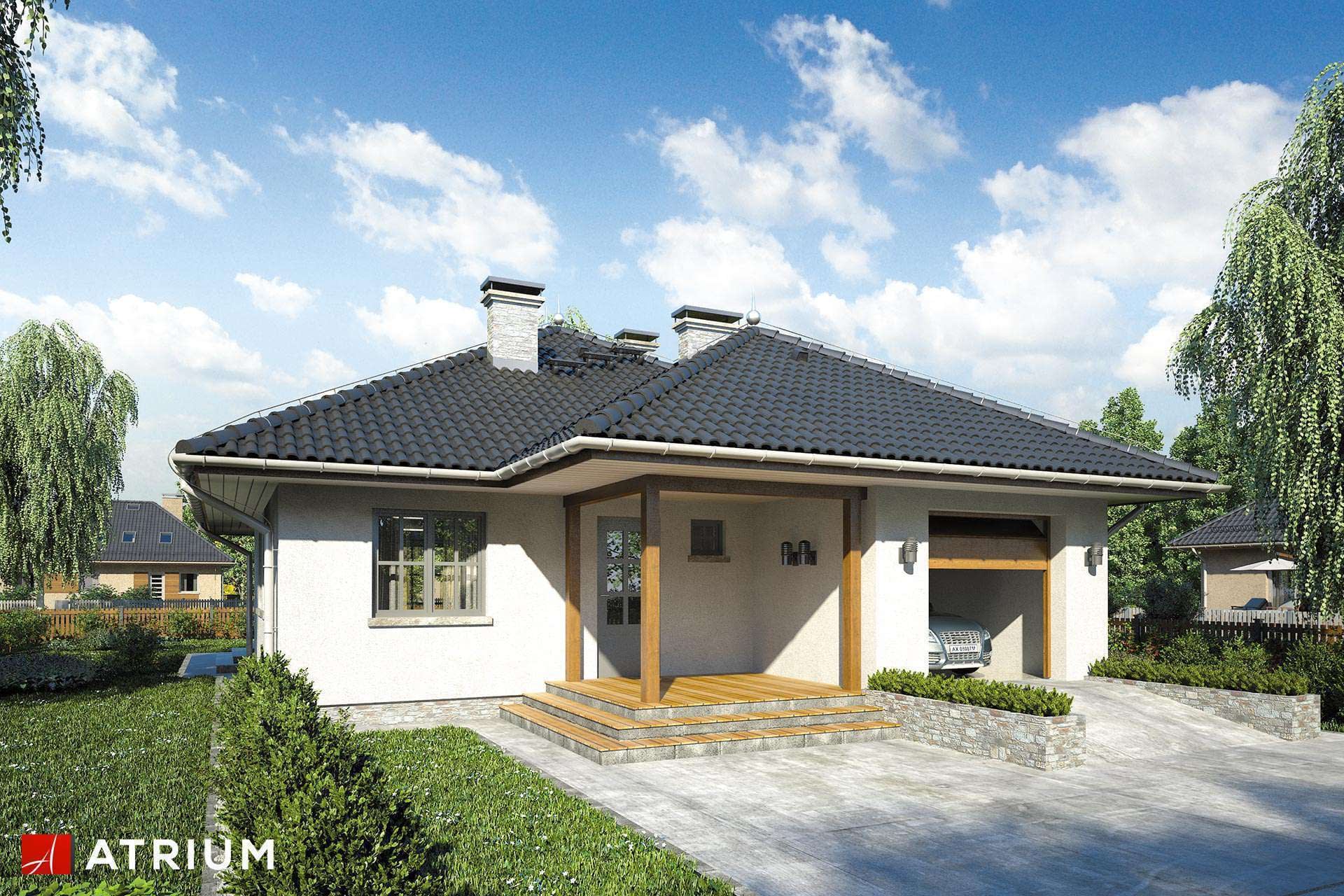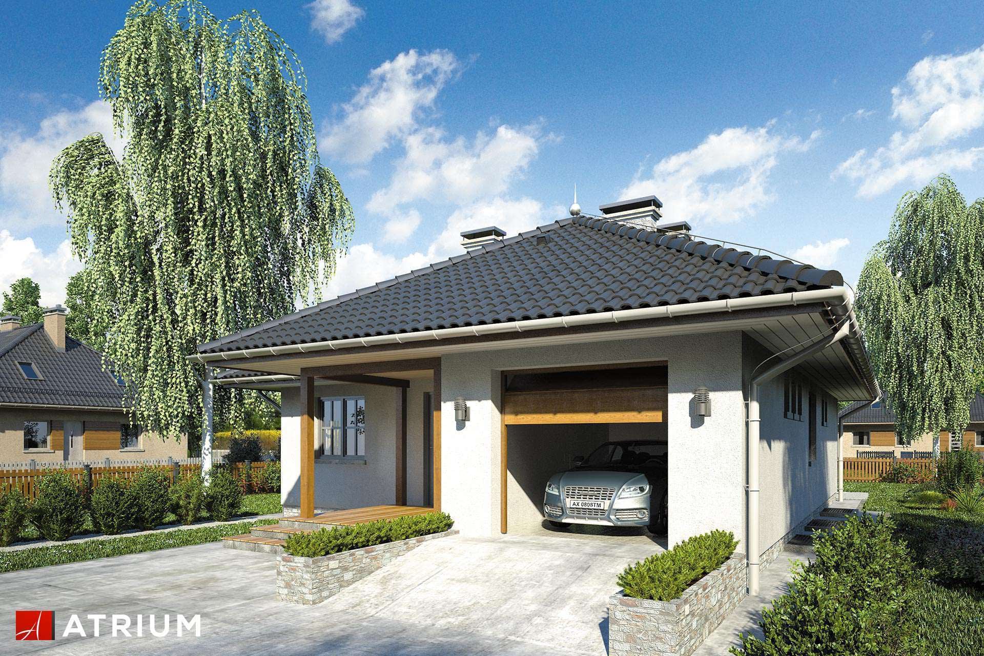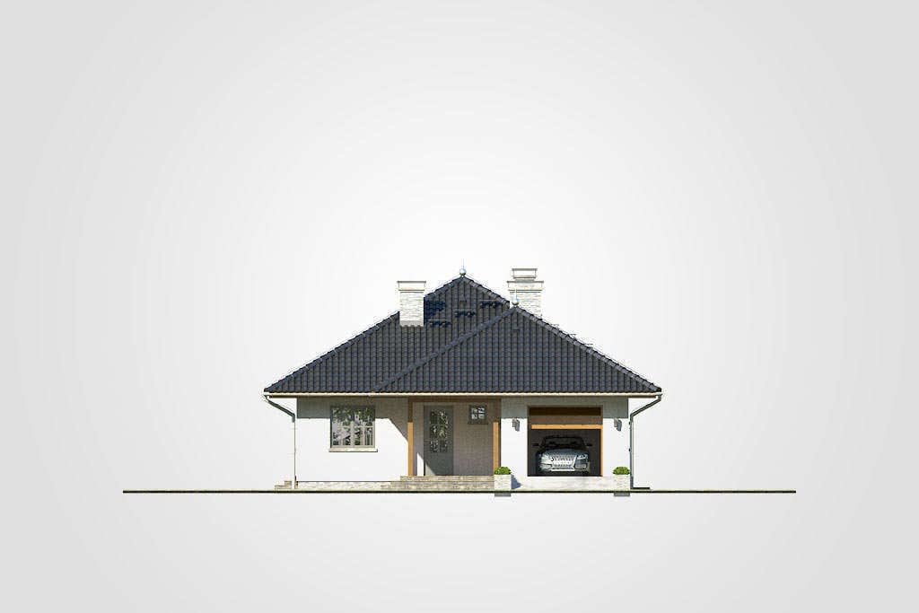 Technologia murowana: Pustak ceramiczny gr. 30 cm + ocieplenie w systemie Termo Organika. Pokrycie dachu dachówką cementową. Brama garażowa i drzwi zewnętrzne marki Hörmann.Rzuty