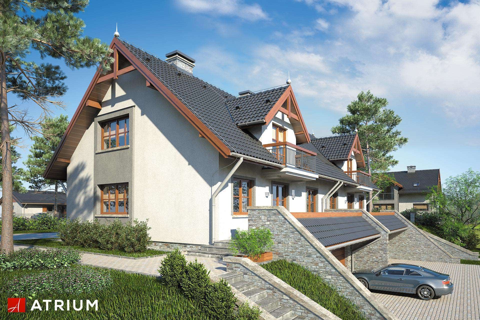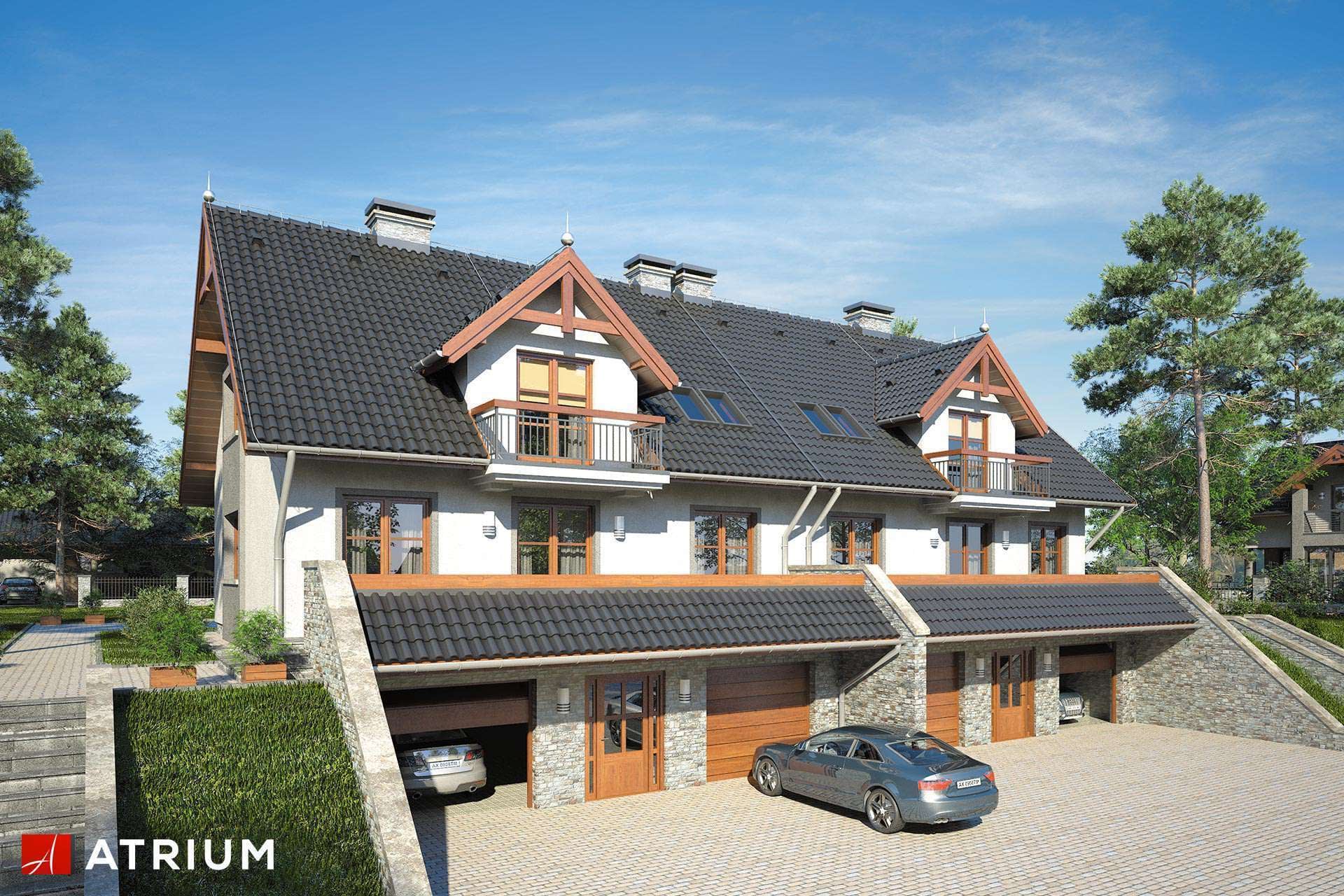 Dom bliźniaczy, 4-lokalowy, parterowy, z poddaszem użytkowym i lukarnami, z 2-stanowiskowym garażem w segmencie - w podpiwniczeniu, dom na skarpę