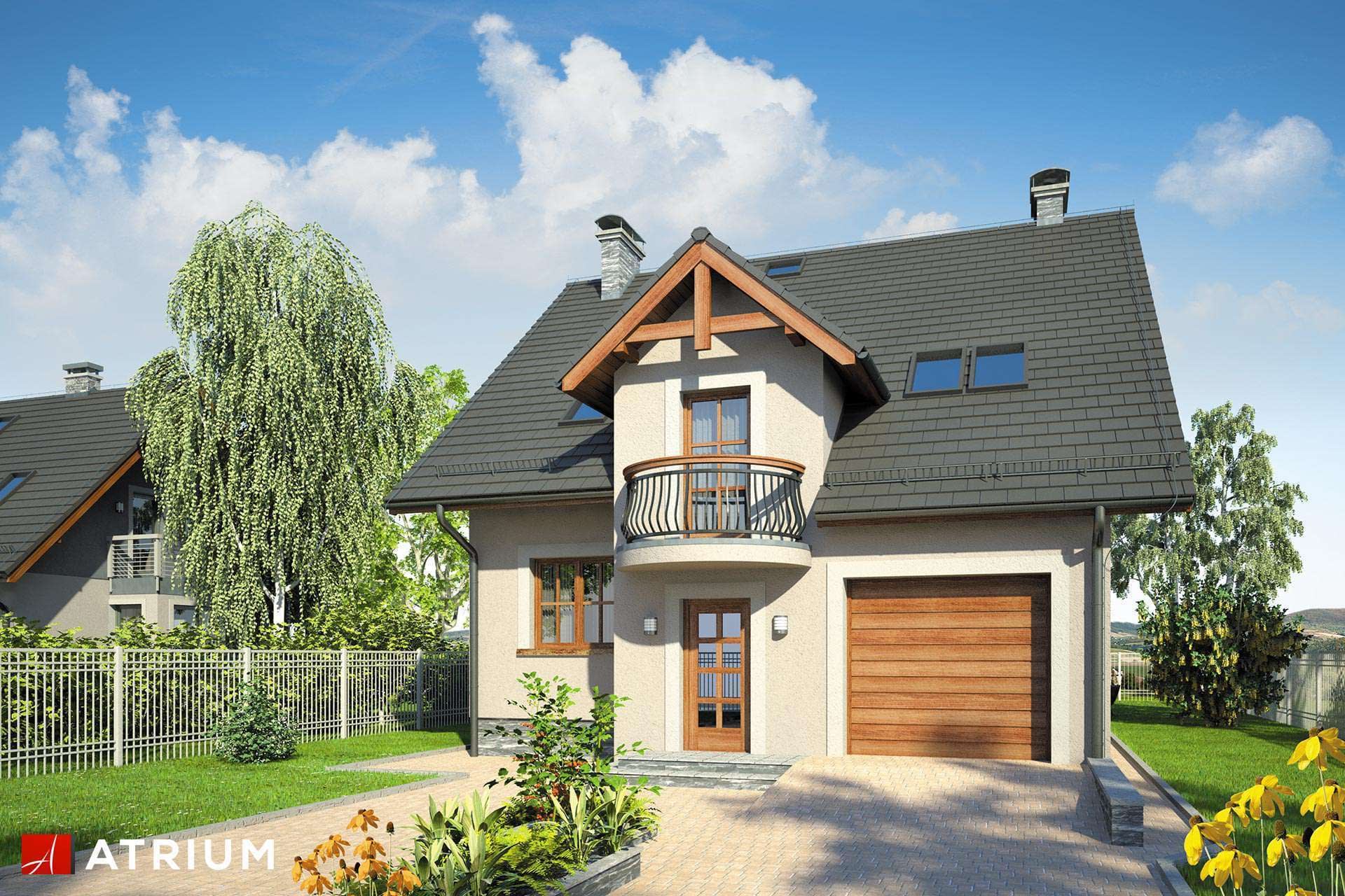 Dom parterowy z poddaszem użytkowym i garażem, z lukarnami nad wejściem i tarasem, na wąską działkęKonstrukcja