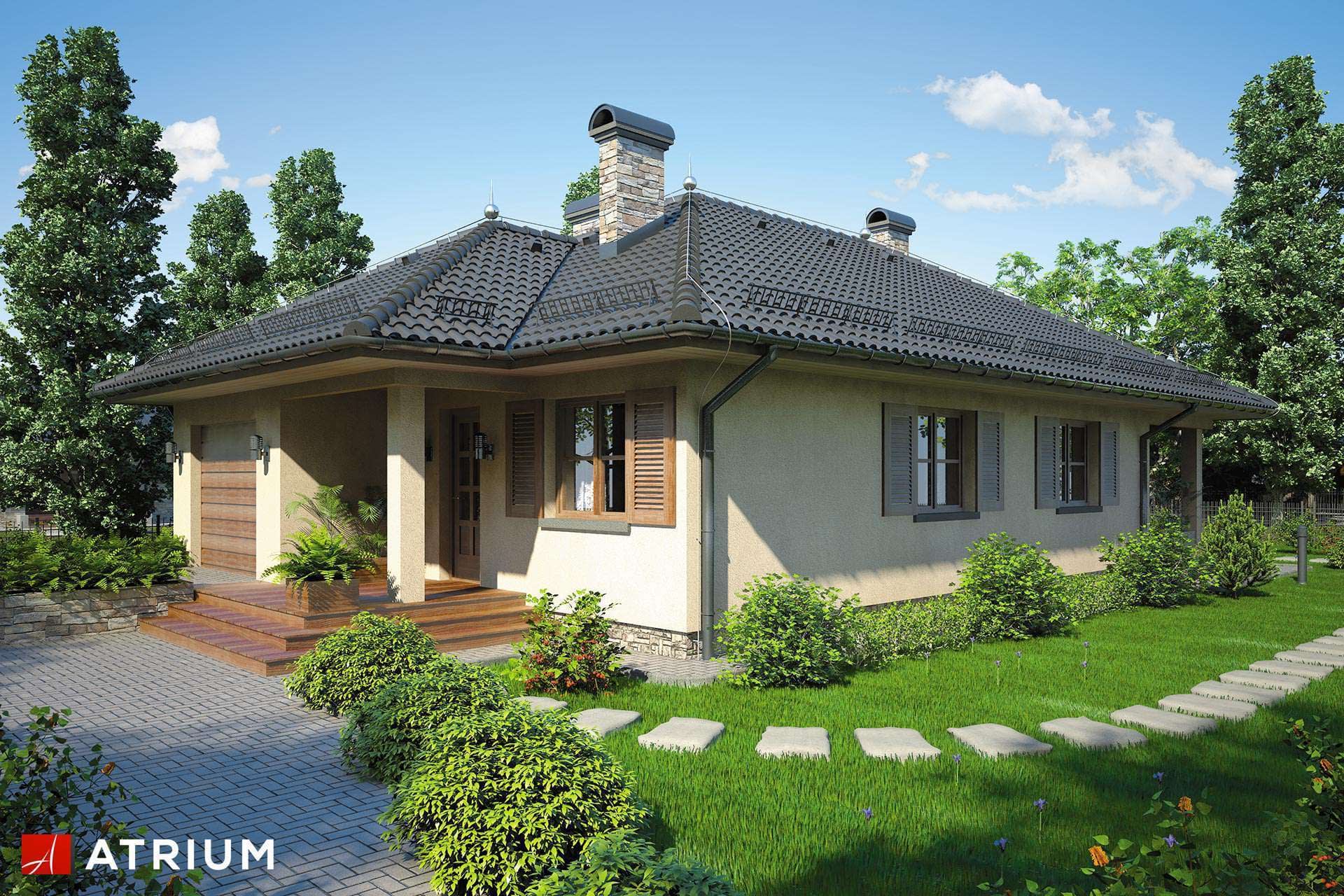 Energooszczędny dom parterowy, z tarasem w podcieniu oraz garażem jednostanowiskowym