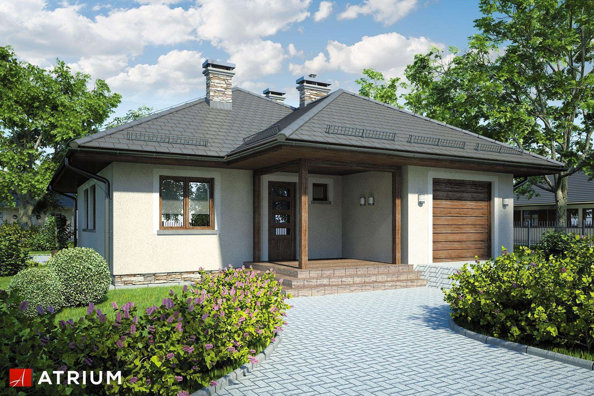 Technologia murowana: Pustak ceramiczny gr. 30 cm + ocieplenie w systemie Termo Organika. Pokrycie dachu dachówką cementową. Brama garażowa i drzwi zewnętrzne marki Hörmann.Rzuty