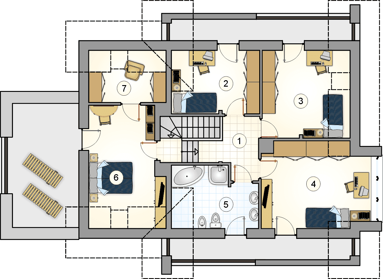 Parterowy dom z poddaszem użytkowym i 4 sypialniami, przestronnym tarasem nad garażem i oryginalnym ryzalitemKonstrukcja