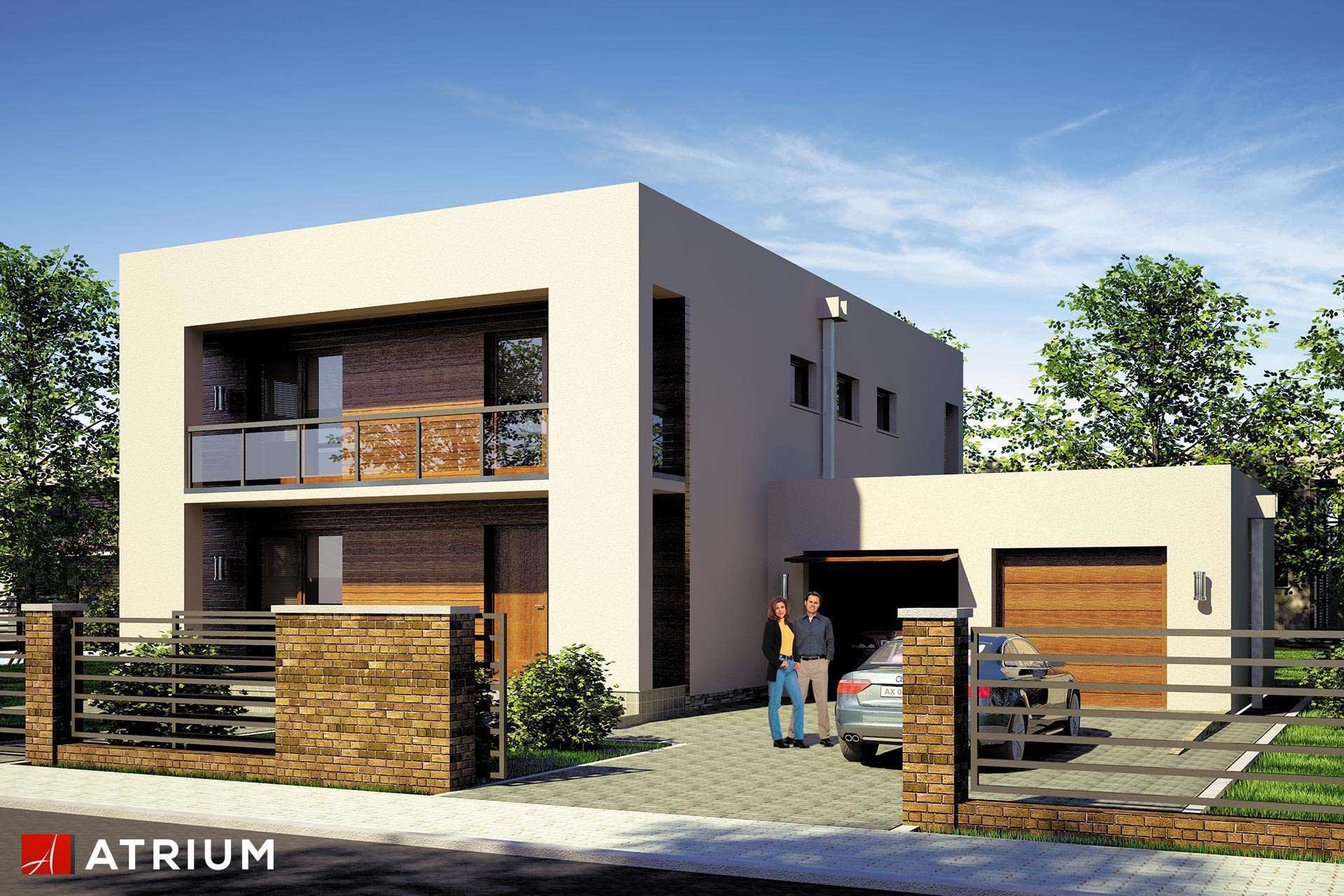 Piętrowy dom z płaskim dachem, 2-stanowiskowym garażem, zadaszonym balkonem, tarasem i wejściemKonstrukcja