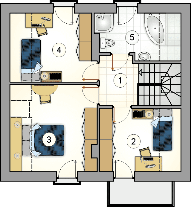 Technologia murowana: Pustak ceramiczny gr. 30 cm + ocieplenie w systemie Termo Organika. Pokrycie dachu dachówką cementową. Drzwi zewnętrzne marki Hörmann.Rzuty