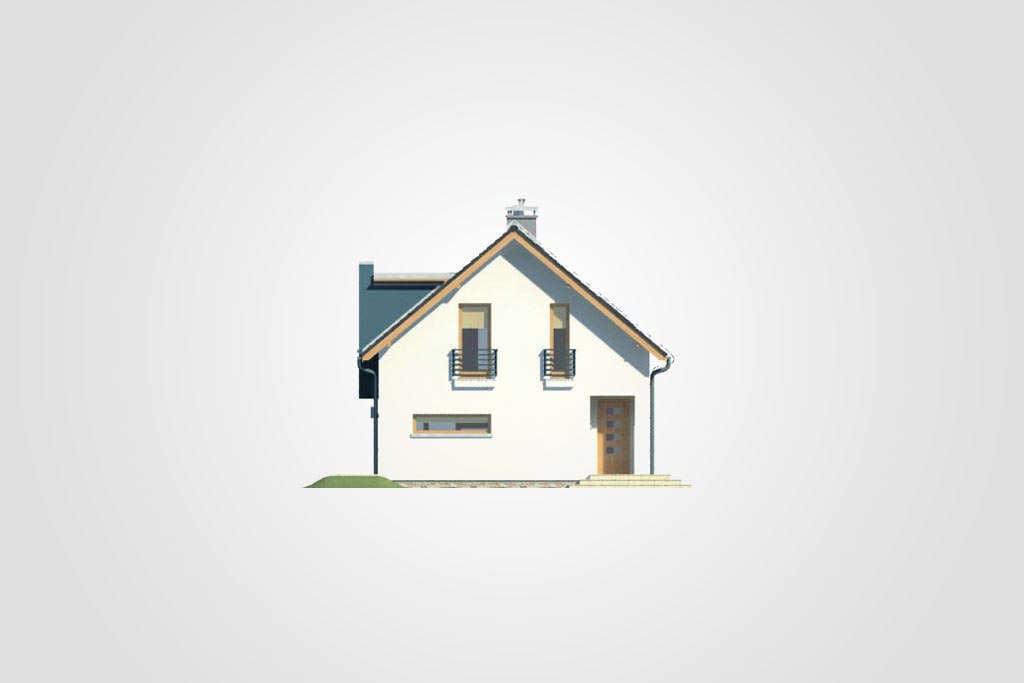 Dom parterowy z dwuspadowym dachem i poddaszem użytkowym, kwadratową lukarną nad tarasem, z 4 sypialniamiKonstrukcja