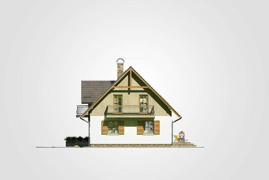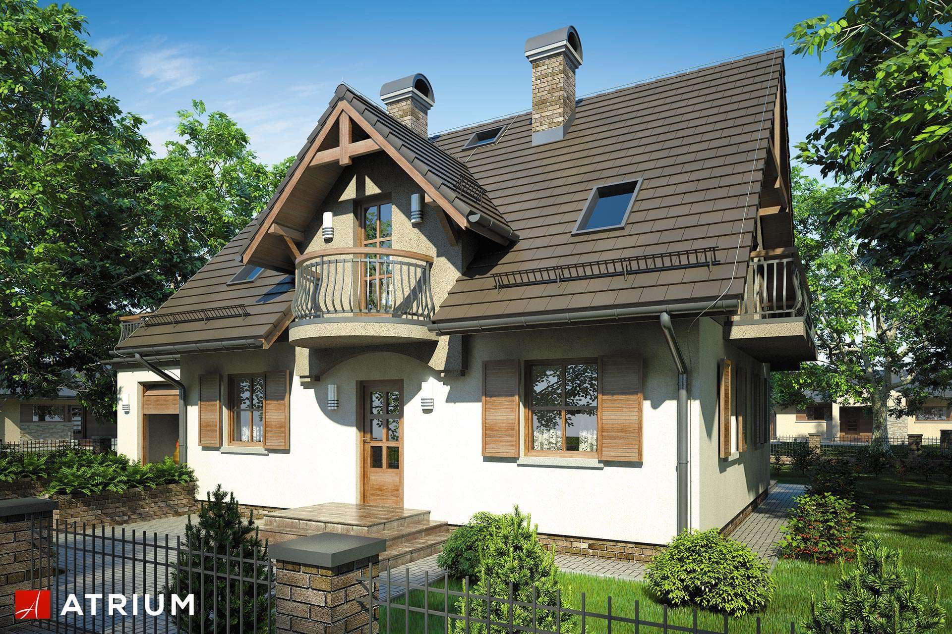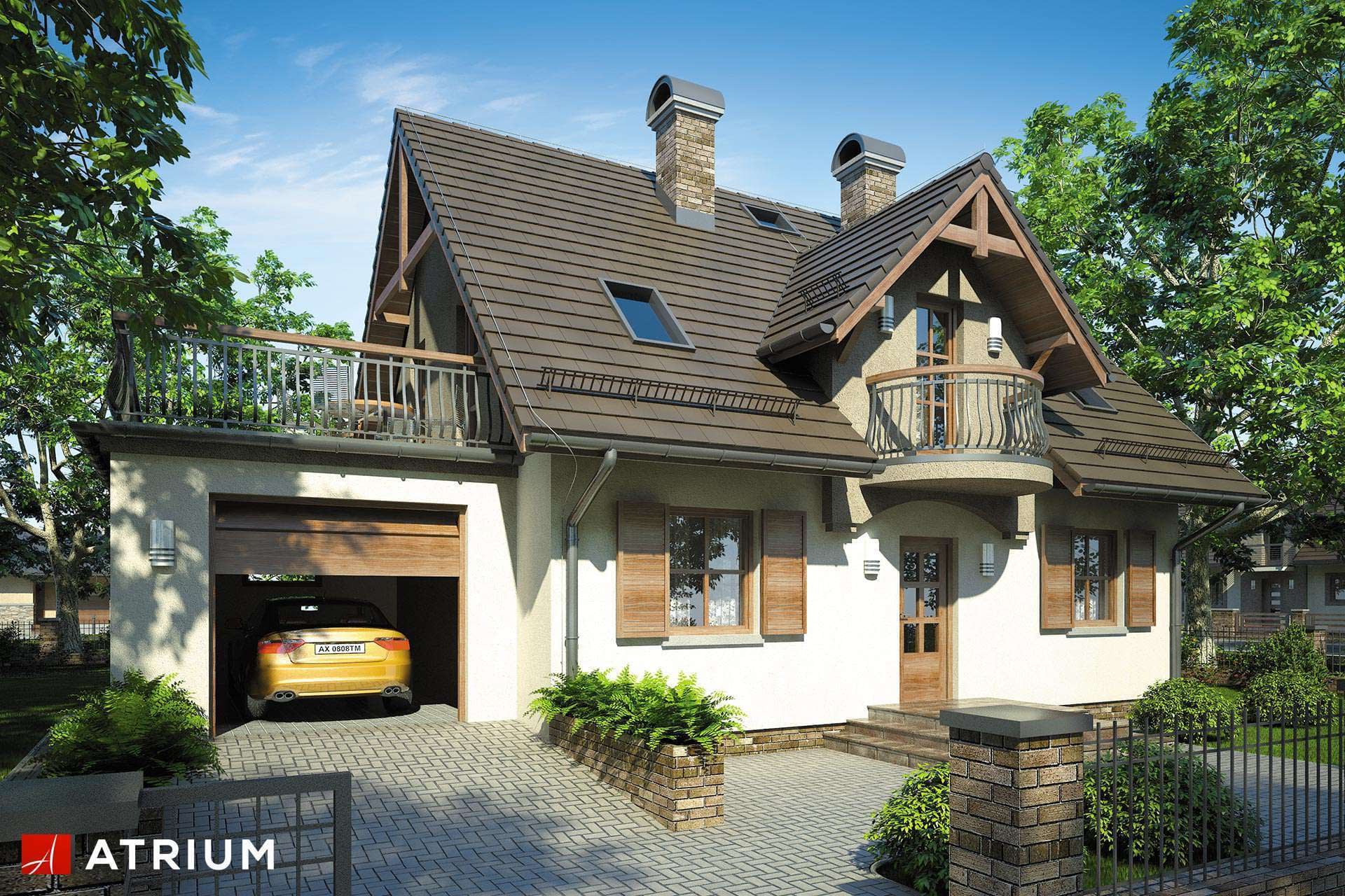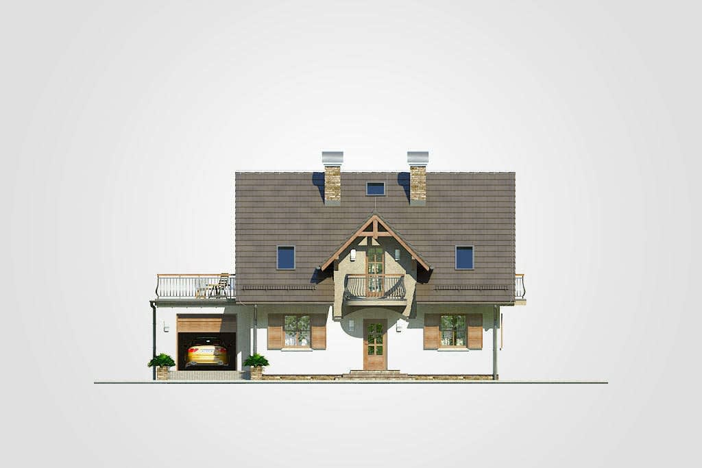 Dom parterowy z poddaszem użytkowym i tarasem nad garażem, lukarna z balkonem nad wejściem, niewielki taras na parterzeKonstrukcja