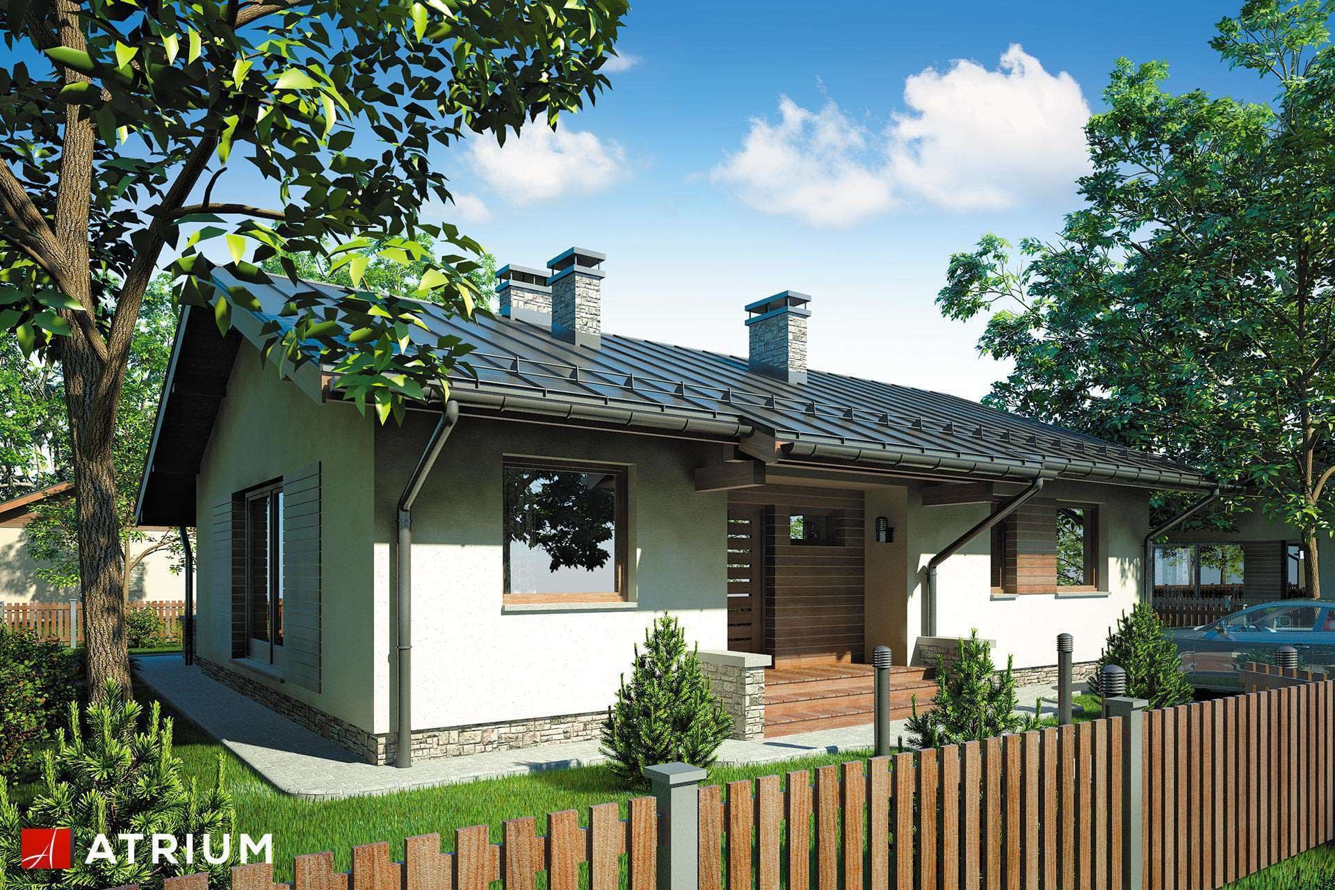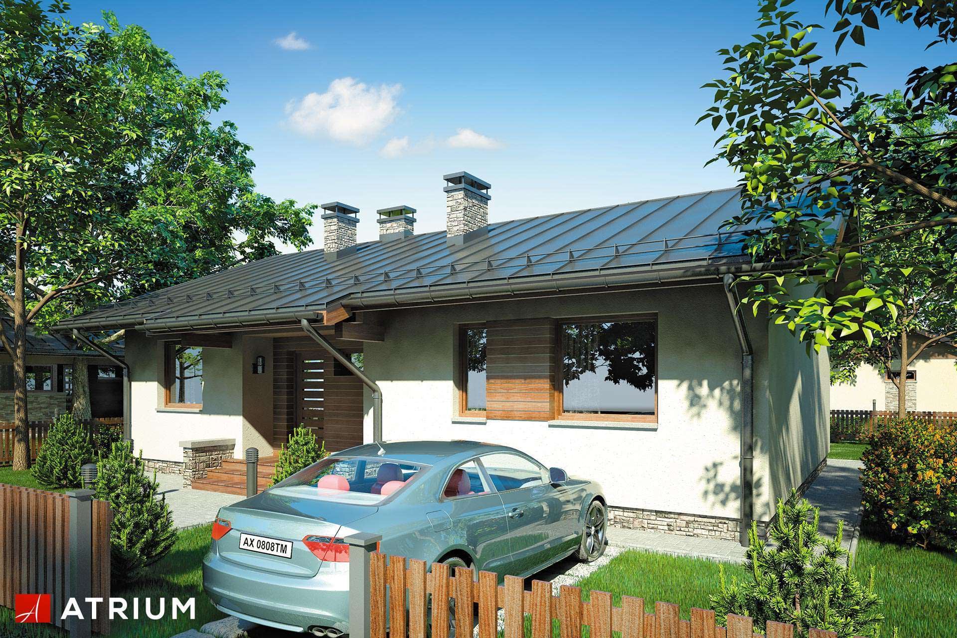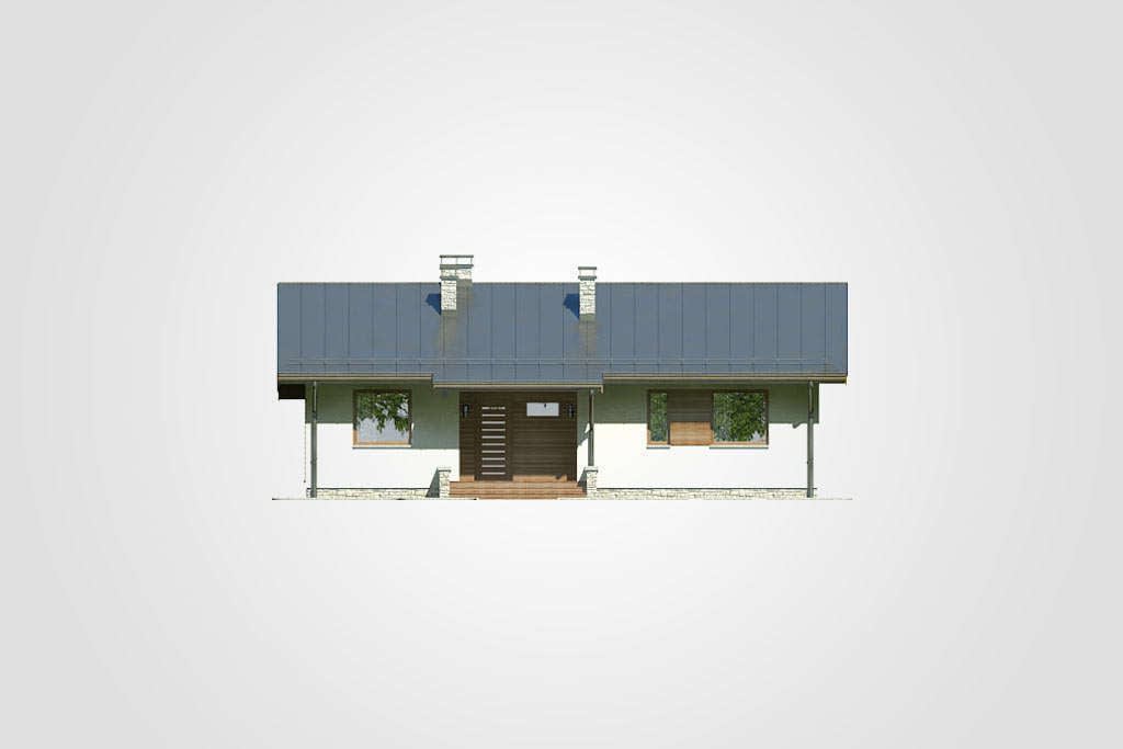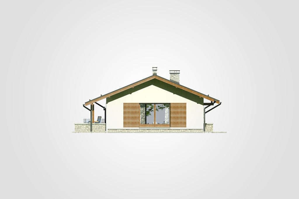 Energooszczędny dom parterowy z zadaszonym tarasem i dwuspadowym dachem