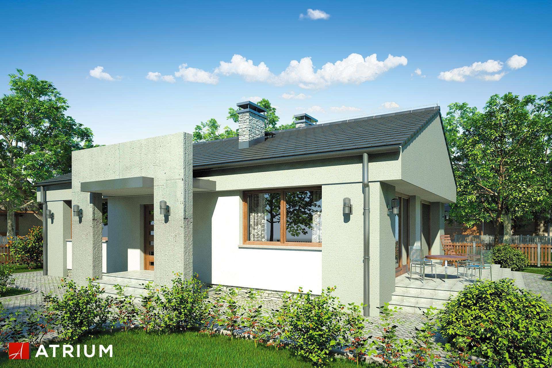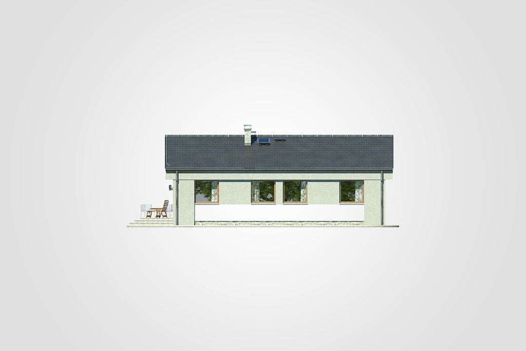 Niewielki dom parterowy w nowoczesnej bryle z tarasem ulokowanym z boku budynkuKonstrukcja