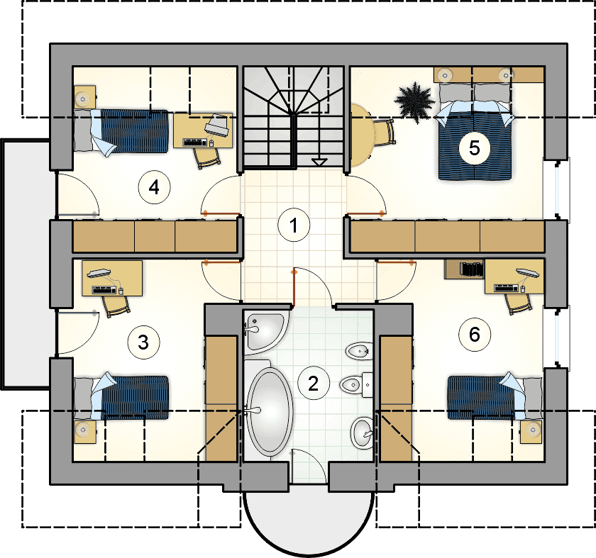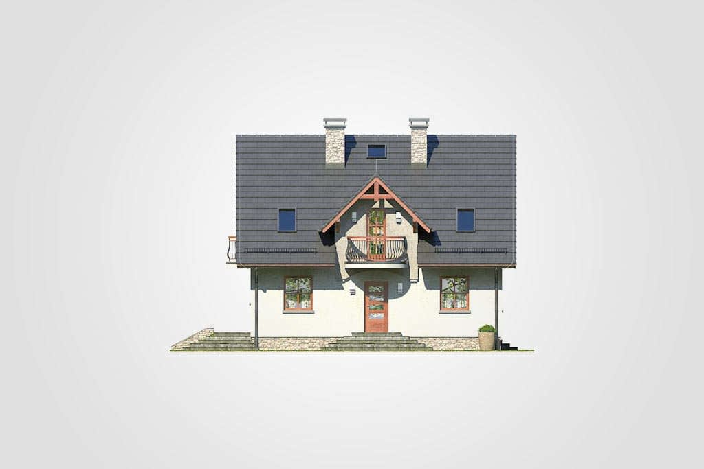 Parterowy dom z dwuspadowym dachem i poddaszem użytkowym, lukarną z balkonem nad wejściem, 4 sypialniami i kotłownią na paliwo stałeKonstrukcja