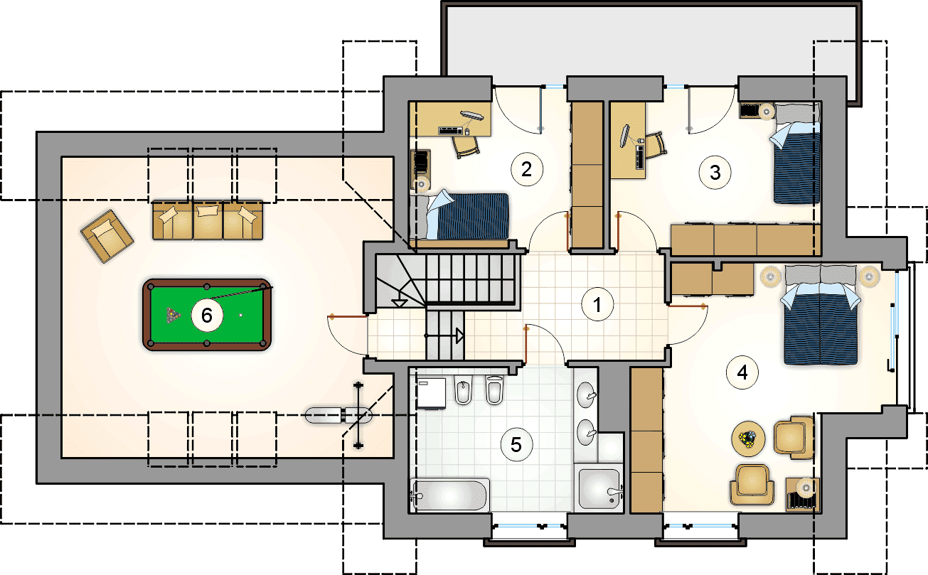 Technologia murowana: Pustak ceramiczny gr. 30 cm + ocieplenie w systemie Termo Organika. Pokrycie dachu dachówką cementową. Brama garażowa i drzwi zewnętrzne marki Hörmann.Rzuty