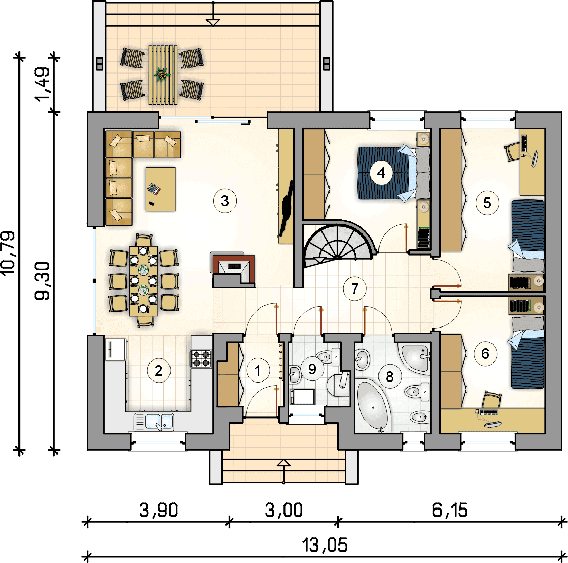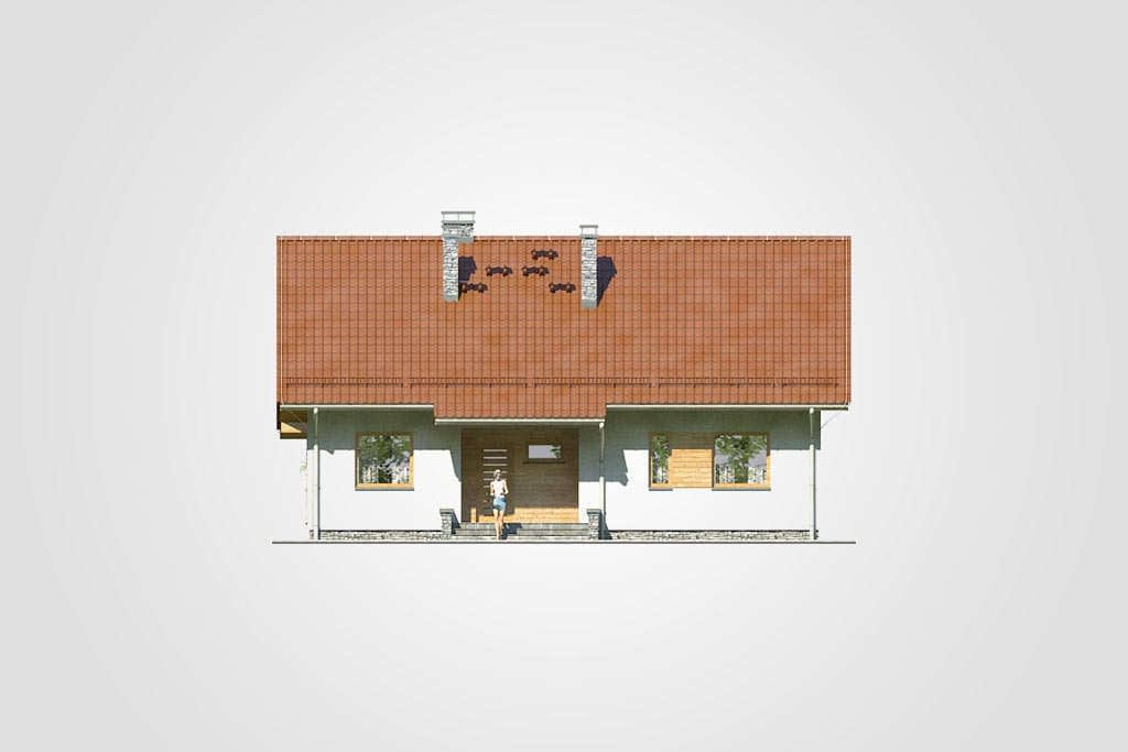 Dom parterowy z możliwością adaptacji poddasza, z dwuspadowym dachem i częściowo zadaszonym tarasemKonstrukcja