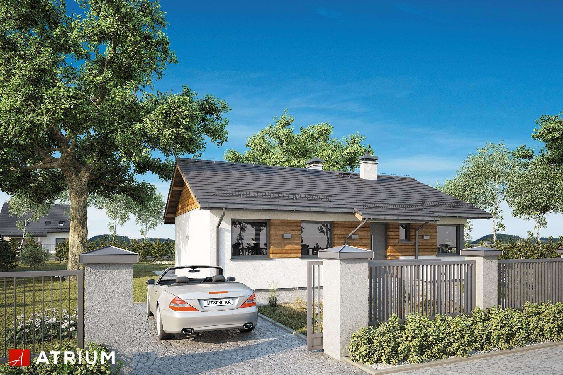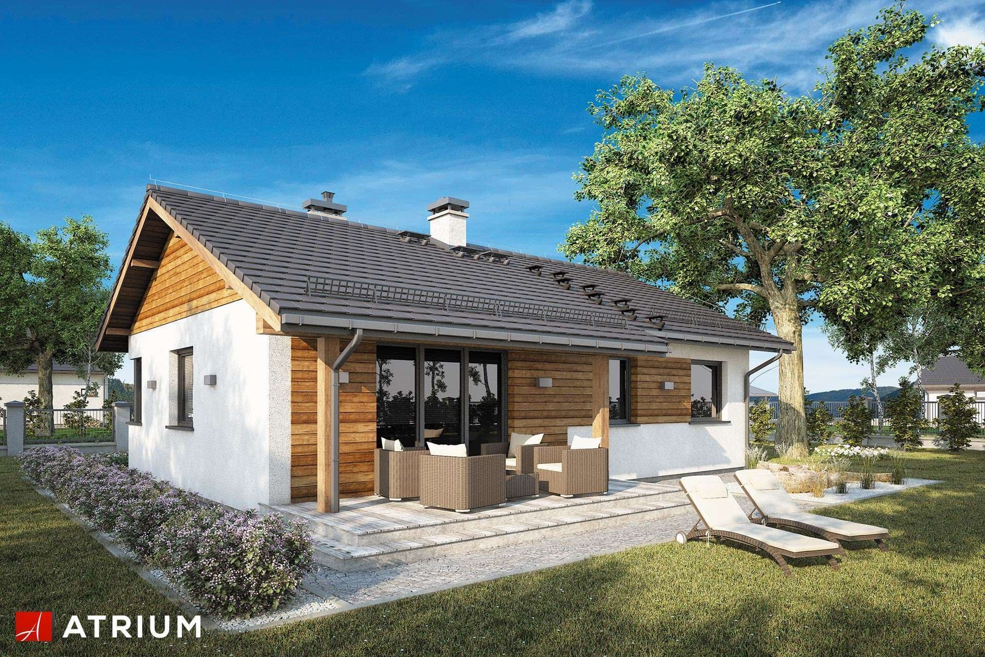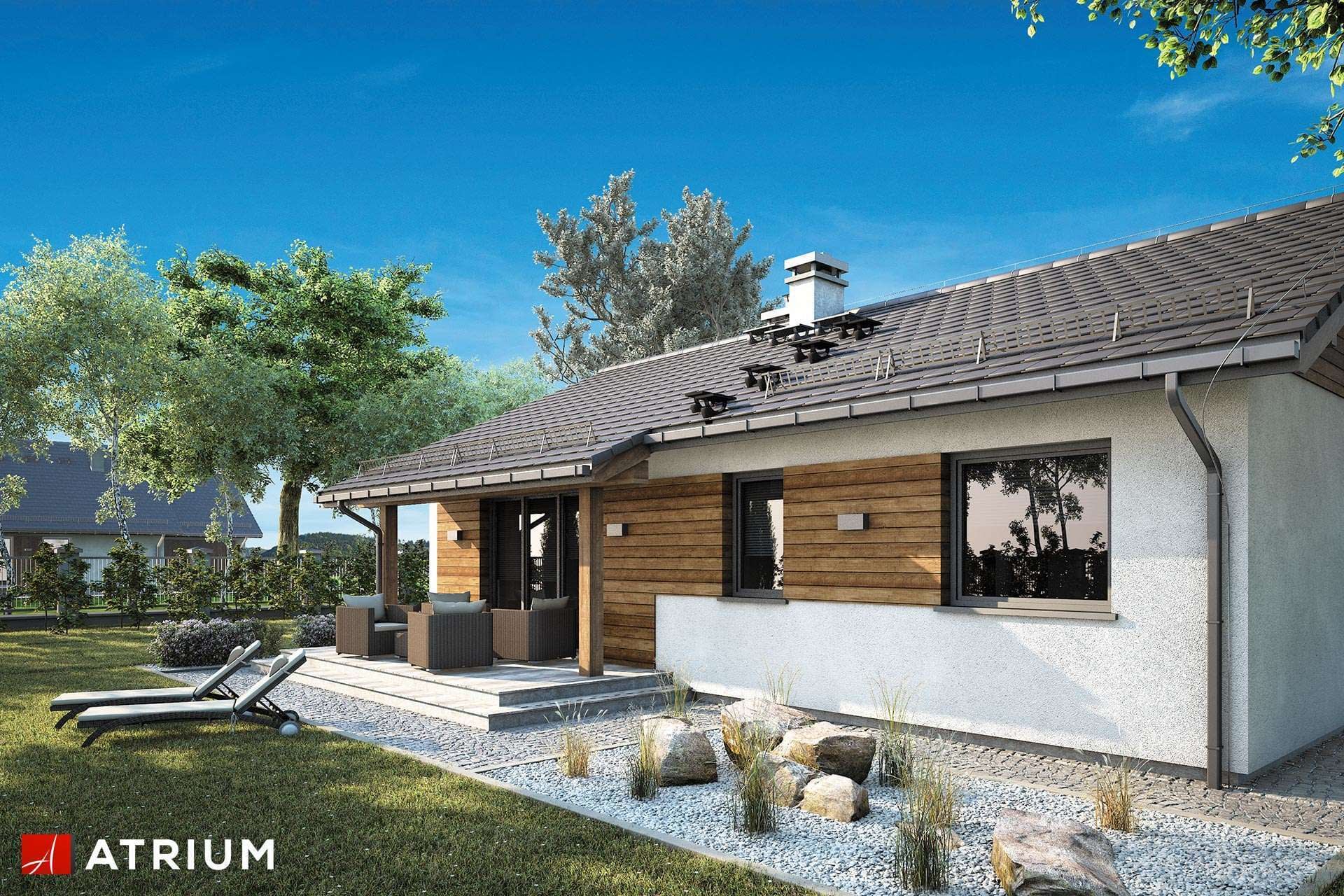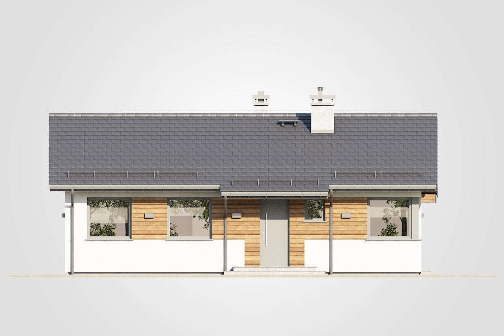 Dom jednorodzinny, parterowy, z dwuspadowym dachem, w technologii szkieletowej