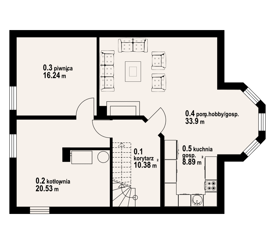 - 0.5 - kuchnia gospodarcza8.89 m²