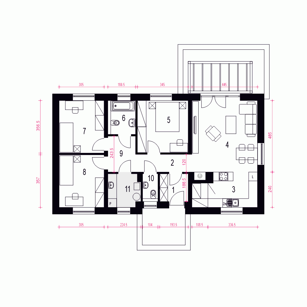 Nasze projekty oferujemy w 3 egzemplarzach, zawierających projekt architektoniczno-budowlany i projekt techniczny. Projekt zagospodarowania działki lub terenu nie wchodzi w skład projektu oferowanego do sprzedaży. Projekt ten należy zlecić we własnym zakresie lokalnemu projektantowi, który opracuje go na podstawie danych zawartych w projekcie architektoniczno-budowlanym i technicznym, po dostosowaniu projektu do warunków lokalnych i wymagań inwestora.