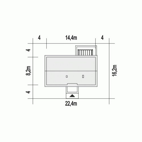 - Minimalne wymiary działki16.2 x 22.4m