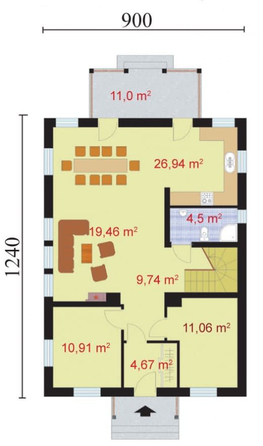 - powierzchnia zabudowy (bez werandy i schodów zewn.) - 112,46m2