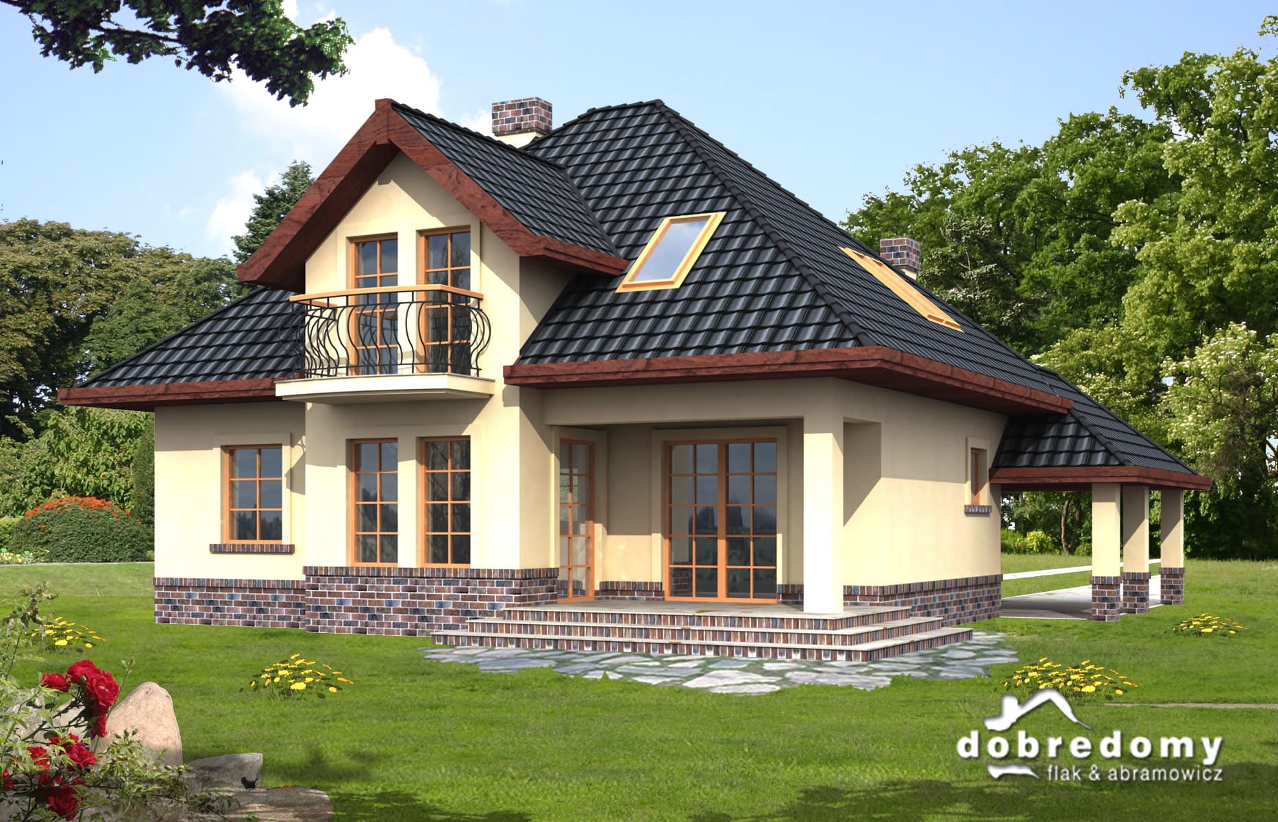 Elewacje pokryte tynkiem strukturalnym w systemie ociepleń Termo Organika. W projekcie zastosowano okna dachowe marki FAKRO. Pokrycie dachu - dachówka ceramiczna lub cementowa CREATON.