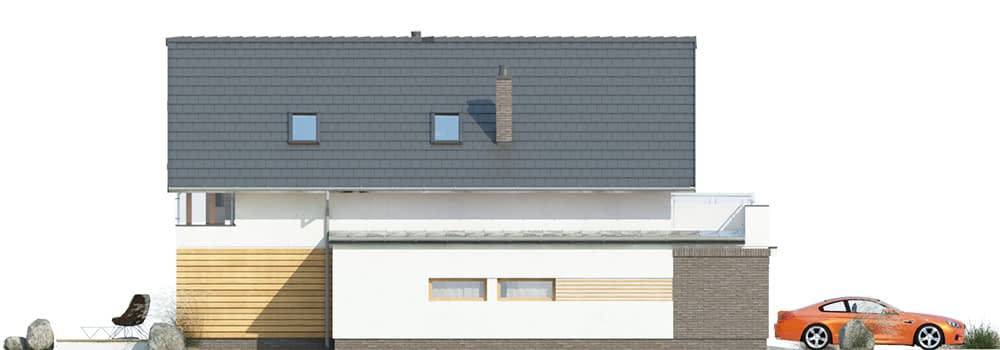 Dom jednorodzinny, wolnostojący, niepodpiwniczony, z poddaszem użytkowym i garażem dwustanowiskowym.